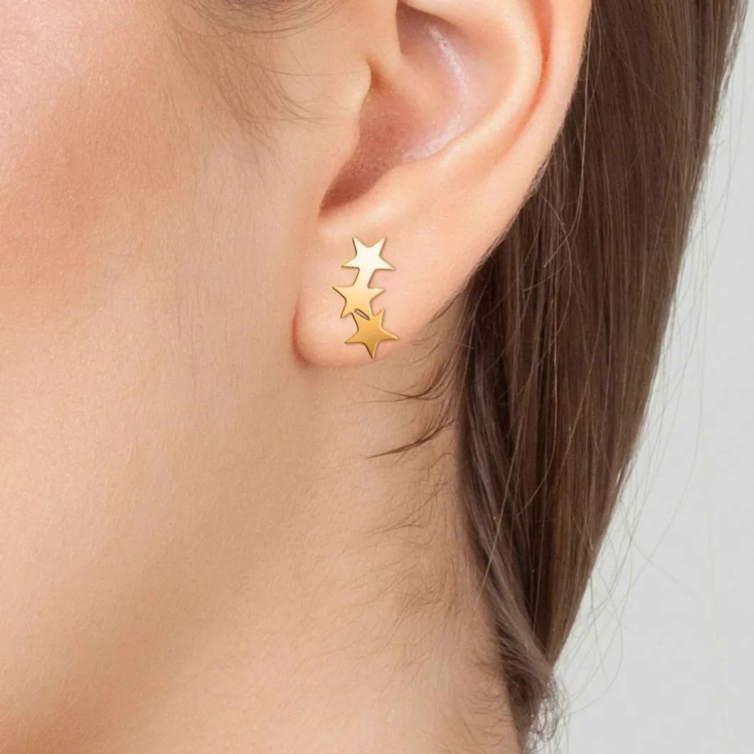 Craquez pour l’allure chic et originale des Boucles d’oreilles – B2323-DORE – Angèle M. Ces bijoux se présentent en forme d’étoiles reliées entre elles. Ils apportent une touche de dynamisme à toutes vos tenues simples et habillées. Dotées de fermoirs à poussettes, robustes et discrets, ces puces d’oreilles tiennent parfaitement en place à toute épreuve.