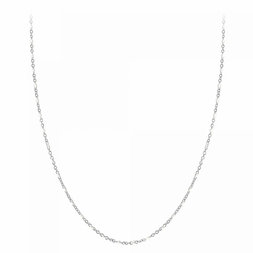 Laissez-vous séduire par le design intemporel et raffiné du Collier femme B2380-BLANC – Angèle M. Ce bijou est constitué d’une chaine argentée en maille forçat, portant de fines perles blanches décoratives, façonnées à la perfection. Il accompagne toutes vos tenues du quotidien et des grandes occasions.