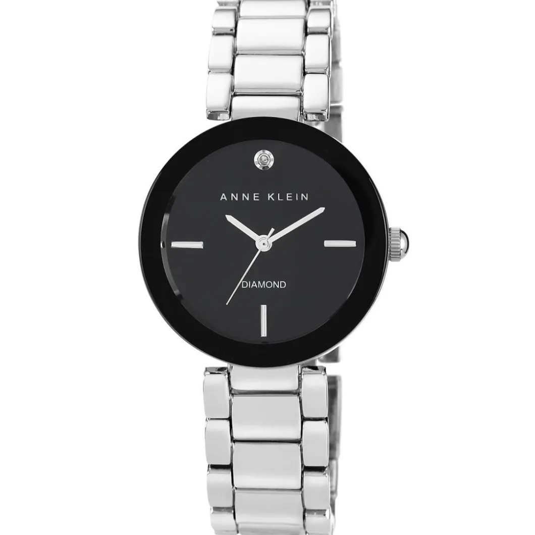 Cette Montre AK-1363BKSV Anne Klein ne peut que séduire. Elle propose un cadran analogique sublimé par une pierre éclatante et signé à 12h.