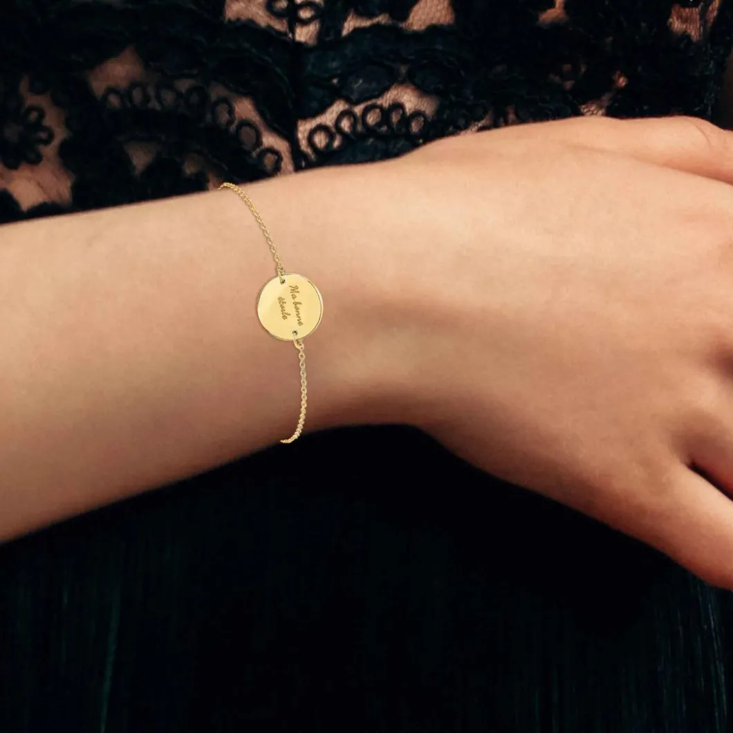 Craquez pour l’allure somptueuse et intemporelle du Bracelet Athème B2814-DORE Femme. Sa chaine en maille forçat est sublimée par un médaillon gravé lisse et brillant. Le fermoir mousqueton et la rallonge assurent un ajustement parfait et confortable au poignet.