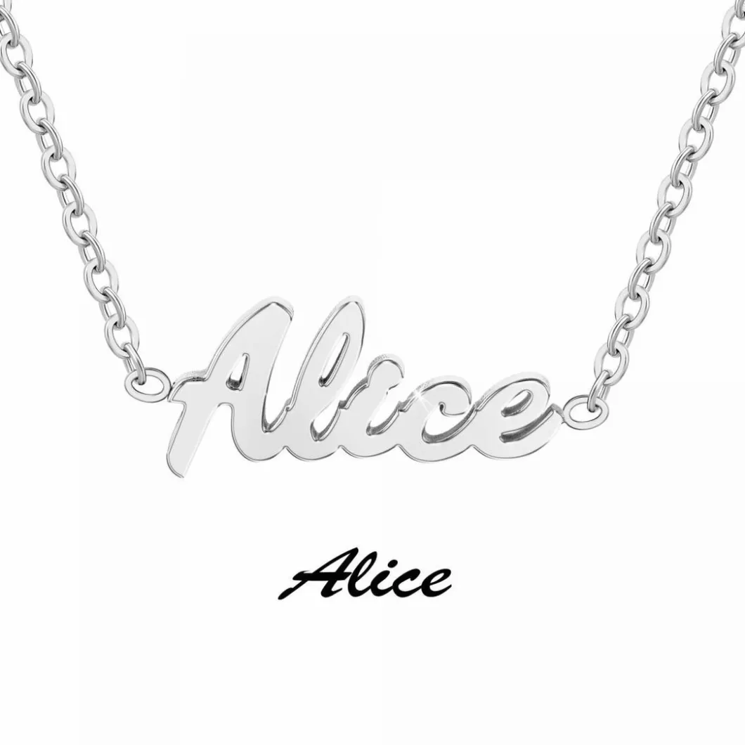Chic et stylé, ce Collier B2689-ARGENT-ALICE est fait pour la gent féminine. Ce bijou unique en son genre porte un lettrage Alice et une chaîne en acier aux éclats argentés.