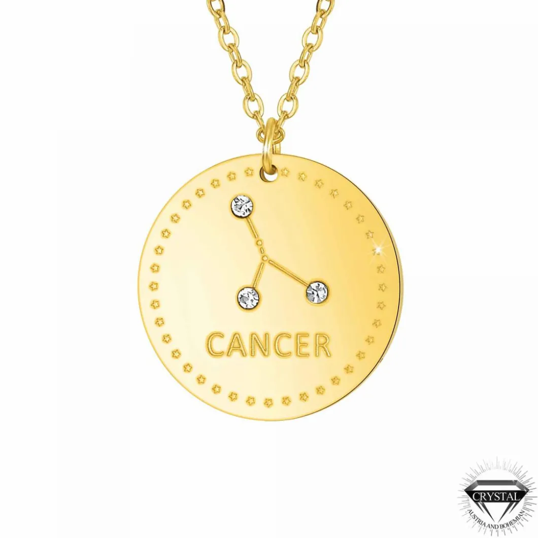 Voici le Collier et pendentif Athème B2449-CANCER Femme, un bijou de caractère qui offre une touche de personnalité à n’importe quelle tenue. Sa chaine en maille forçat est magnifiée par un pendentif médaillon avec des gravures soignées et des cristaux de bohême étincelants. Ce bijou se porte à n’importe quelle occasion pour compléter une tenue simple ou habillée.