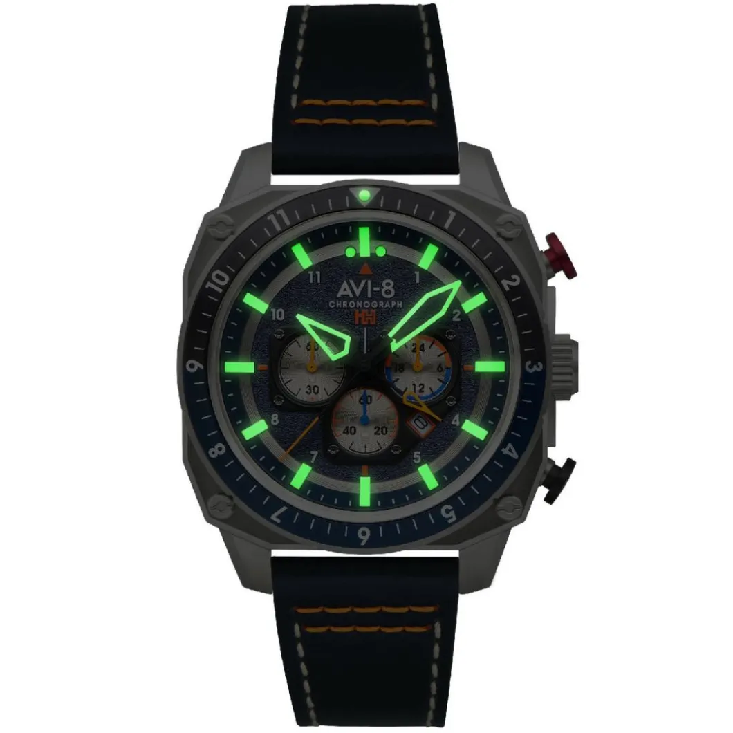 Caractéristiques Montre pour homme Hawker Hunter Dual Time Chrono AV-4100-02 avec bracelet en cuir bleu