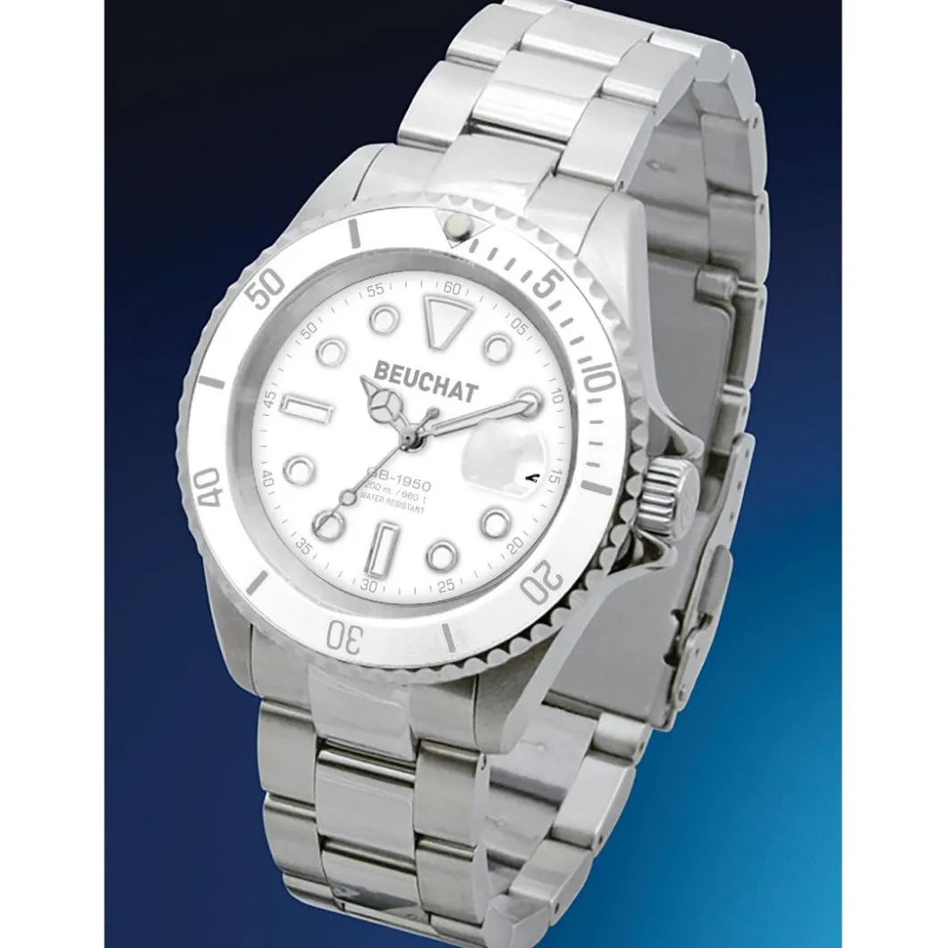 La marque Beuchat présente la Montre Mixte Beu1950-22 qui combine fonctionnalité et esthétique. Dotée d’un boitier de couleur argent au diamètre de 40mm, cette montre ajoute une touche d’éclat à votre poignet. Avec une largeur du bracelet de 20 mm, elle est confortable pour une proximité subtile avec votre peau. De plus, le dateur intégré apporte une fonctionnalité supplémentaire à ce bijoux, donnant un aspect pratique à cette montre au design élégant et discret.