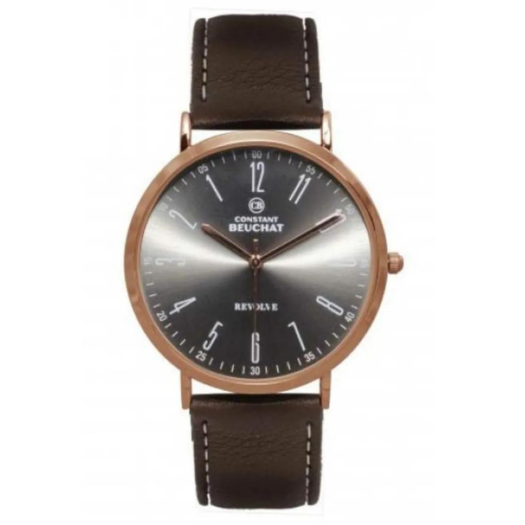 Laissez vous tenter par cette somptueuse Montre mixte Revolve By Constant Beuchat-CBR100-1. Son bracelet en cuir de couleur marron et son cadran noir de forme ronde mettront à coup sur votre poignet en valeur. Il s’agit d’une montre insolite avec un mouvement qui tourne dans l’autre sens (anti-horaire).