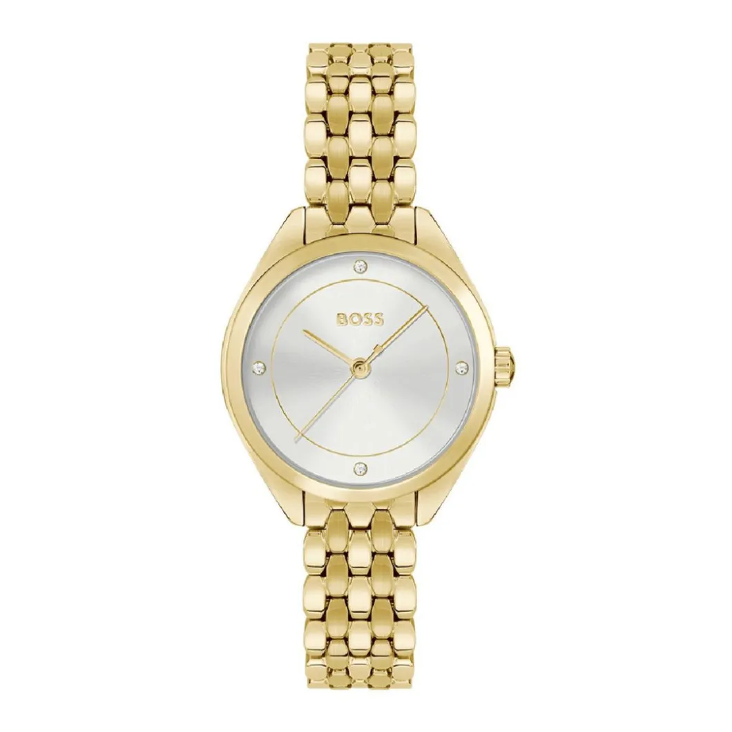 Découvrez la magnifique montre femme signée Boss. Un véritable bijou qui vous permettra d’affirmer votre style grâce à son boîtier doré. Avec un diamètre de boîtier de 25 mm, elle donne une touche d’élégance à votre poignet. Le bracelet d’une largeur de 12 mm parachève le design et apporte la finition parfaite à cette audacieuse création. Un choix judicieux qui témoigne d’une esthétique unique.