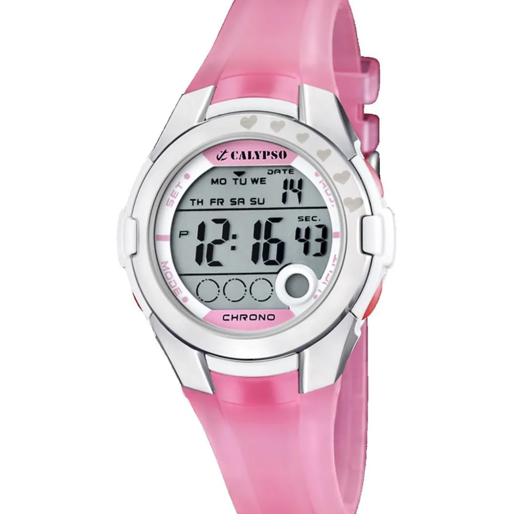 Montre Fille Calypso K5571-2 convient parfaitement au poignet d’une fille. Elle est dotée d’un design fantaisie. La lunette est sertie de cœurs sur le côté. Ce bijou est équipé d’un chronographe et d’un dateur avec affichage jour. Le bracelet est en résine et le boîtier en acier inoxydable.