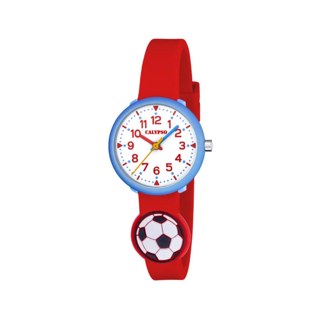 La Montre garçon Calypso My First Watch – K5845-4 est une montre signée Calypso, parfaite pour les petits garçons. Elle a un affichage analogique qui facilite la lecture de l’heure. La couleur dominante de la montre est le rouge, présente aussi bien sur le boitier que sur le bracelet. Le boitier rond de 29 mm de diamètre est en plastique et le bracelet est en silicone. La montre a une étanchéité de 30 m, idéale pour le quotidien des enfants. Elle est dotée d’un mouvement quartz et se ferme par une boucle simple. Le verre de la montre est aussi en plastique, garantissant sa solidité.