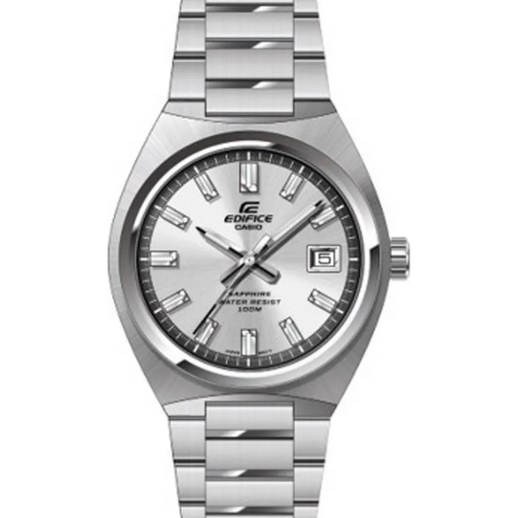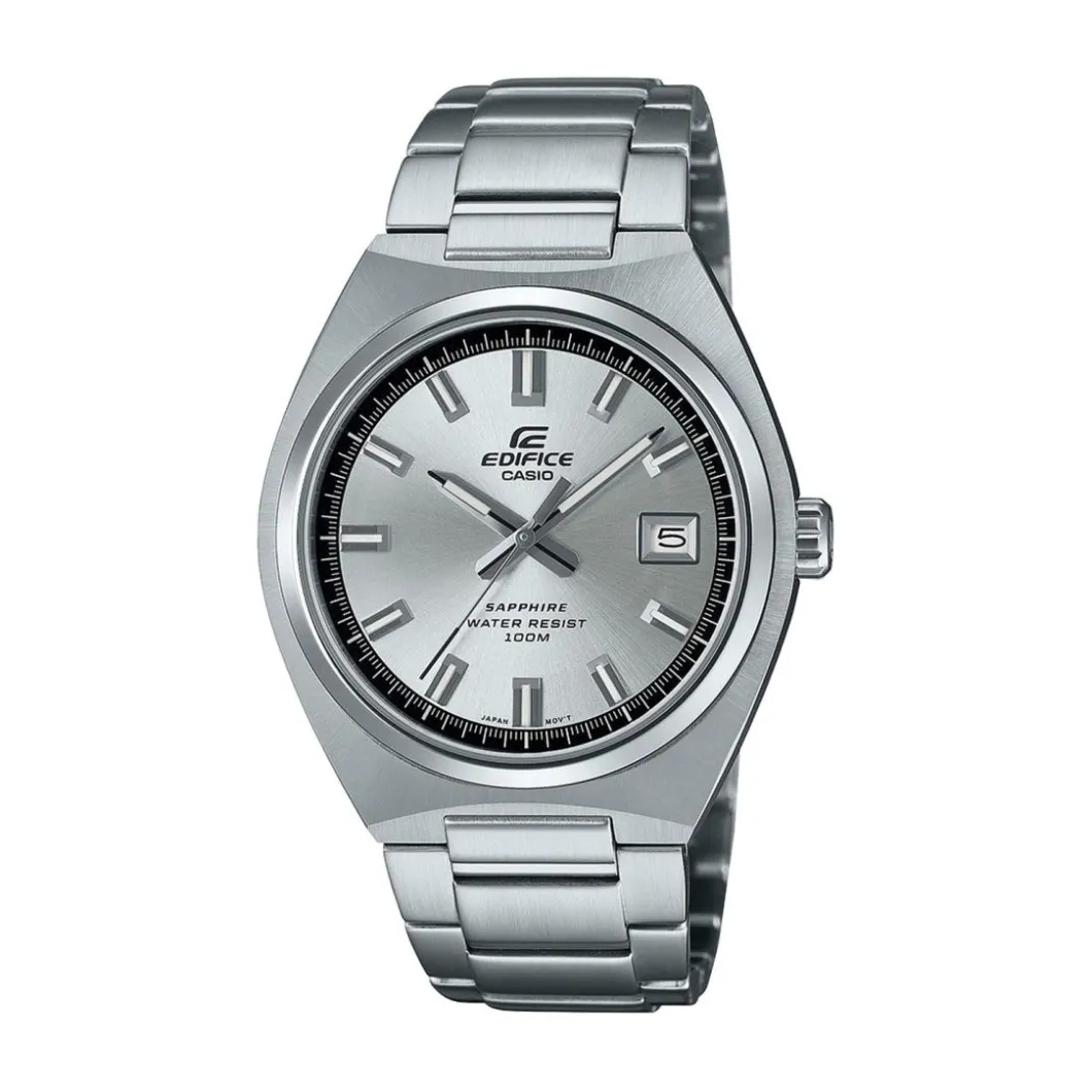 La Casio Edifice Classic – EFB-109D-7AVEF est une montre élégante destinée aux hommes. Avec un boitier et un bracelet uniformément argent, cette pièce affiche une allure sophistiquée. Le bracelet en acier et le boitier rond en acier se marient parfaitement. Le boitier rond s’accompagne d’un cadran argent agrémenté d’un dateur. Le mouvement à Quartz assure la précision de l’heure. La montre offre une étanchéité de 100 mètres et est fermée par une boucle déployante. En plus, elle est pourvue d’un verre en saphir, ajoutant une touche de luxe et promettant une résistance aux rayures. Une véritable déclaration de style, cette montre est l’accessoire parfait pour compléter toute garde-robe masculine.