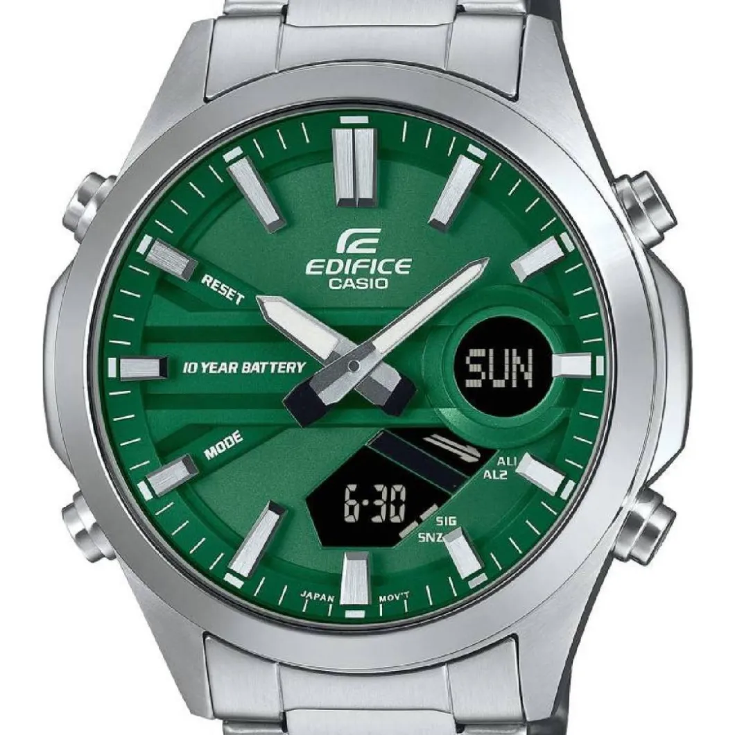Optez pour une allure masculin avec la Montre Casio Edifice Classic – EFV-C120D-3AEF avec affichage numérique. Son robuste boitier rond est réalisé en résine couleur argent, assorti d’un bracelet en acier du même ton, fixé par une boucle déployante. Le diamètre du boitier est de 46 mm et résiste à une profondeur de 100 m (10 ATM). Le mouvement à quartz assure un fonctionnement précis. Le verre minéral renforce la résistance de cette montre.