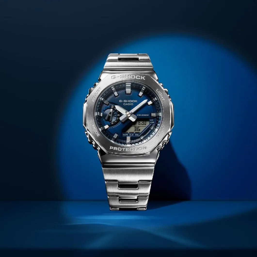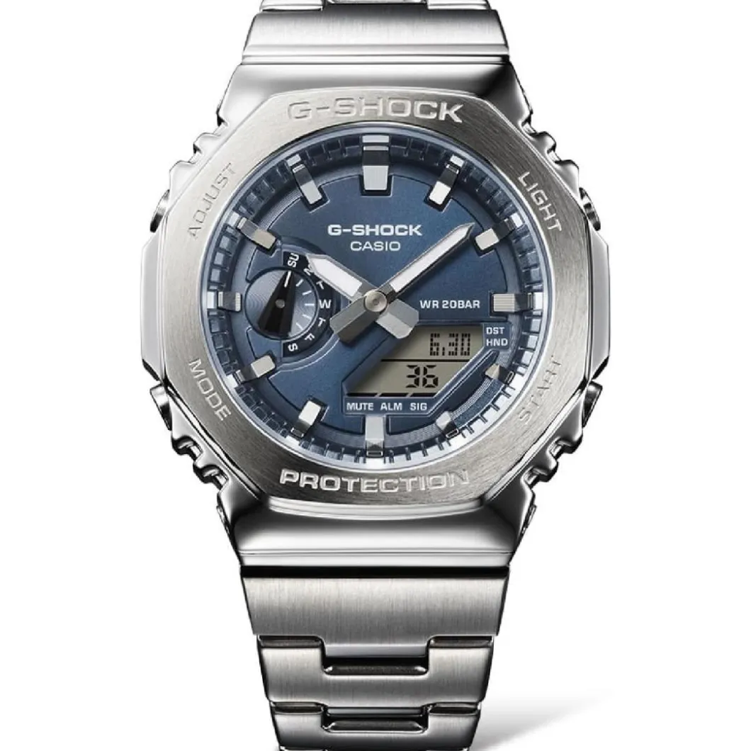 Destinée à l’homme moderne, la montre Casio GM-2110D-2BER G-Shock Classic se distingue par son affichage digital contemporain. Elle est dotée d’un boîtier rond en acier couleur argent, mesurant 45 mm de diamètre. Robuste et étanche jusqu’à 200 mètres, elle est idéale pour les activités nautiques. Son bracelet en acier de couleur bleu ajoute une touche d’élégance. De type Quartz, son mouvement assure une précision remarquable. La montre est munie d’une boucle déployante pour une fixation sûre et confortable au poignet. Le verre minéral qui recouvre le cadran est résistant aux rayures et impacts. Le design de cette montre allie parfaitement fonctionnalité et style.