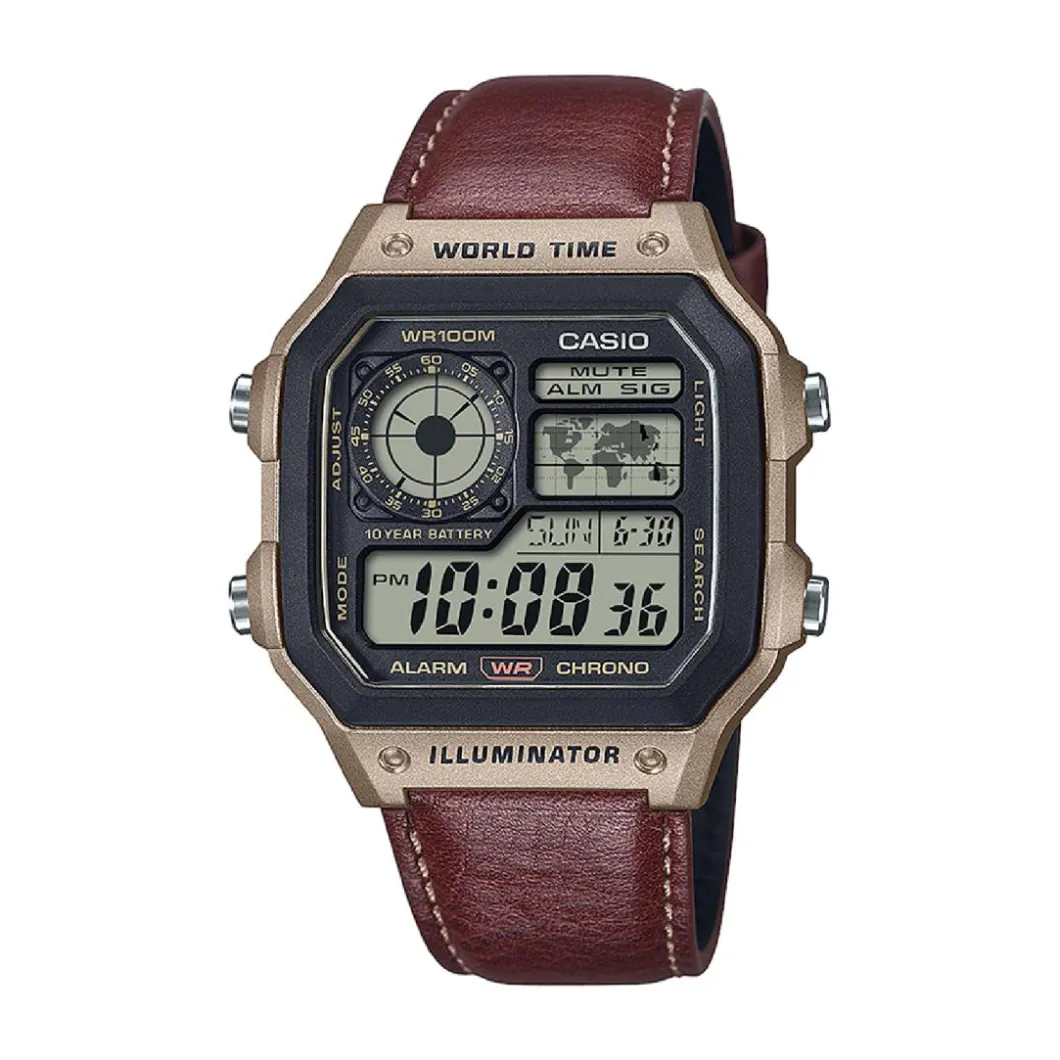 Voici la montre homme Casio – AE-1200WHL-5AVEF avec un bracelet en cuir de qualité. Elle fait partie de la vaste collection Casio Timeless Collection Men. Le boîtier doré de forme carré, mesurant 42 x 45 mm, est fabriqué en résine robuste. Le cuir noir du bracelet apporte une touche d’élégance à l’ensemble. Un verre en plastique protège l’affichage digital de cette montre. Son mouvement est assuré par un mécanisme à quartz. Cette montre est dotée d’une résistance à l’eau jusqu’à 100 m ou 10 ATM, ce qui en fait un choix idéal même pour les nageurs occasionnels. Le bracelet se ferme facilement grâce à une boucle simple.