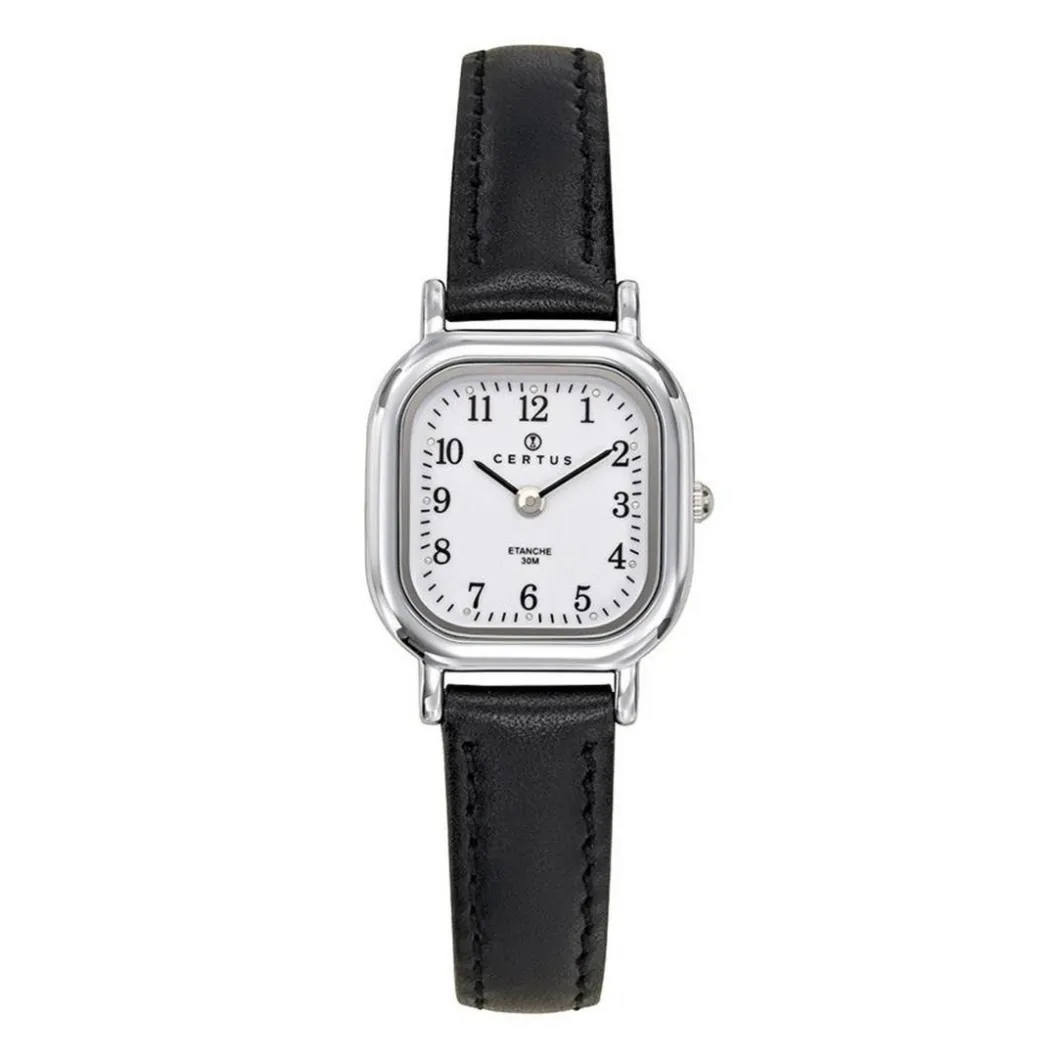 La Montre Femme Certus 644402 est une pièce raffinée d’horlogerie. Un boîtier carré en acier de couleur argent abrite un affichage analogique, complété par une fonction dateur. Avec un diamètre de boîtier de 23 mm, elle est subtile et discrète. Son bracelet en cuir noir ajoute une touche d’élégance intemporelle. Cette montre est dotée d’un mouvement à quartz et est étanche jusqu’à 50 mètres (5 ATM). Sa fermeture se fait par une boucle simple pour plus de confort. Le verre minéral du cadran assure une durabilité et une résistance supérieures aux rayures. Indéniablement, la Montre Femme Certus 644402 est un mélange parfait de finesse et de fonctionnalité.
