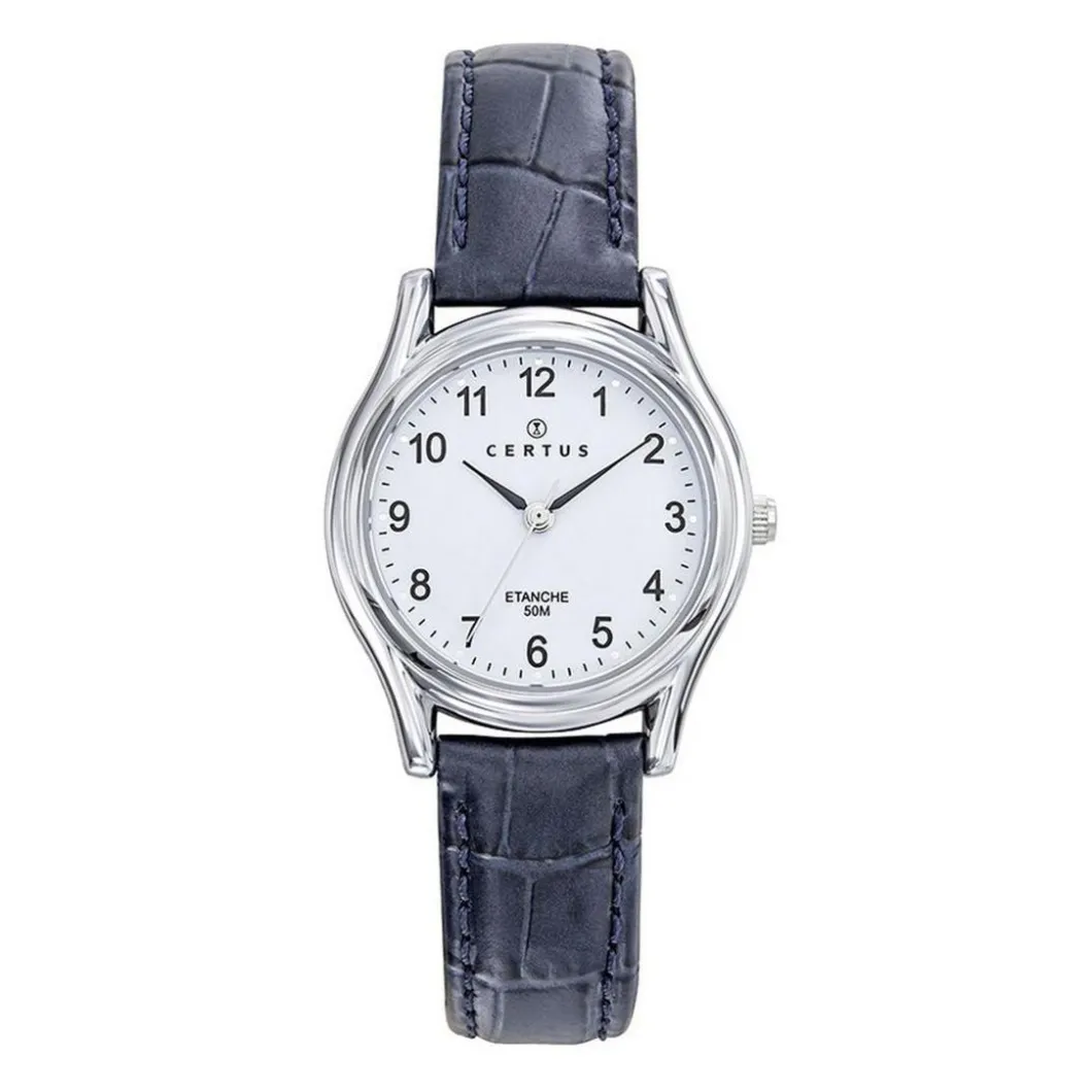Cette montre femme Certus est dotée d’un bracelet en cuir bleu qui se combine avec perfection avec son boîtier rond argenté. Le mouvement à quartz garantit une précision remarquable pour l’affichage analogique. La couleur du boîtier et du bracelet respectivement argente et bleu, s’exprime avec subtilité pour créer un effet visuel des plus charmants. La montre présente un diamètre de boîtier de 23mm, une étanchéité de 30m et une boucle simple type de fermeture. Le cuir du bracelet assure un confort maximal pour le poignet pendant que le verre minéral contribue à la robustesse de la montre tout en préservant sa clarté.