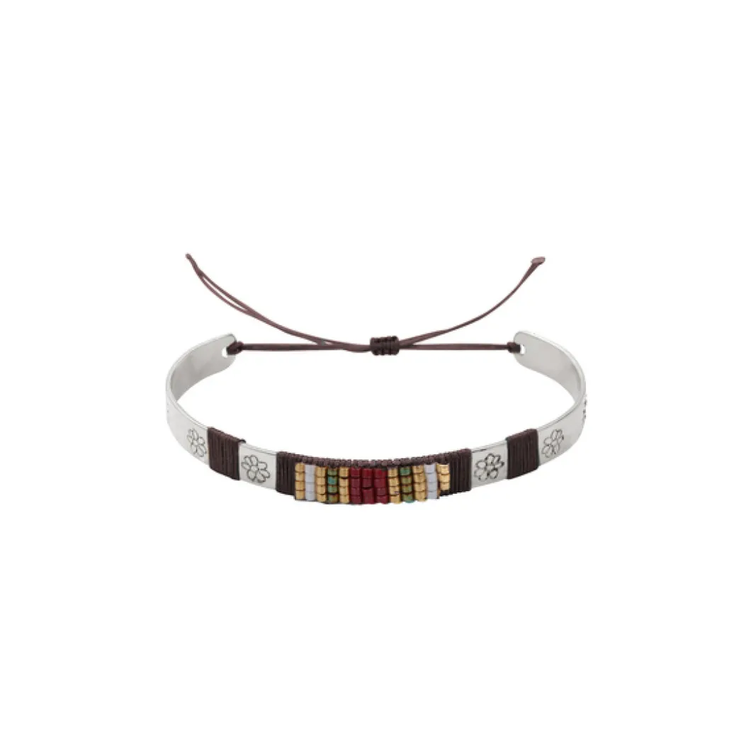 Il présente une forme jonc classique rehaussée de gravure florale et pierre synthétique turquoise, ivoire et kaki, pour habiller avec style votre poignet. Fermé à l’aide d’un lien, il est facile à manipuler.