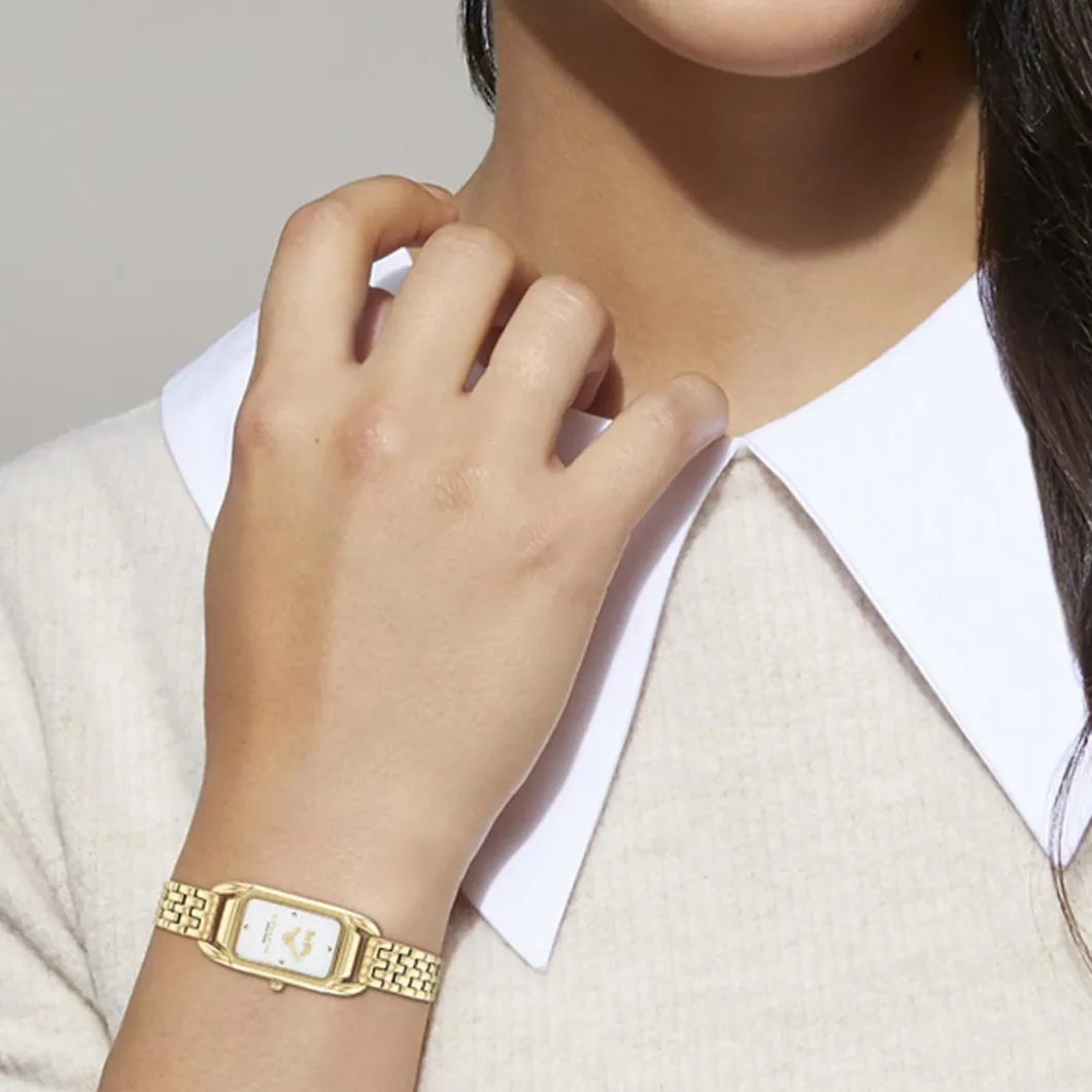 La montre Femme Coach Cadie – 14504036 est un produit chic de marque Coach. Avec son bracelet et son boîtier en acier doré, cette montre brille d’une élégance sans égale. L’affichage est analogique et le mouvement est quartz, offrant une précision optimale. Le boîtier, d’un diamètre de 18 mm, est doré et a une forme rectangulaire distincte qui ajoute un charme unique à l’ensemble. Le bracelet doré est fixé avec une boucle déployante pour garantir un confort maximum. Le verre minéral protège le cadran délicat. La montre est étanche jusqu’à 30 mètres / 3 ATM. Cette montre dorée n’est pas simplement un accessoire, mais une affirmation de style qui complète toute tenue avec une touche de luxe.