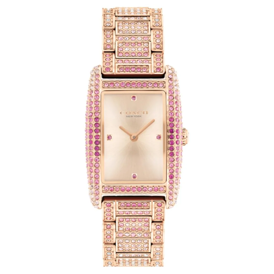 La montre femme Coach Reese – 14504414 est un accessoire sophistiqué et intemporel. Son boîtier rectangulaire est conçu en acier d’un charme doré rose qui contraste harmonieusement avec le bracelet en acier d’un coloris argent. Ce magnifique bracelet se ferme à l’aide d’une boucle déployante. Dotée d’un affichage analogique, cette montre est alimentée par un mouvement Quartz. Le diamètre du boîtier est de 25 mm, ce qui offre un port confortable au quotidien. L’étanchéité de 30 m (3 ATM) apporte une certaine tranquillité d’esprit. Le verre minéral utilisé confère une résistance aux égratignures inégalée. Grâce à ces détails raffinés, cette montre Coach ajoute une touche d’élégance à toute tenue.
