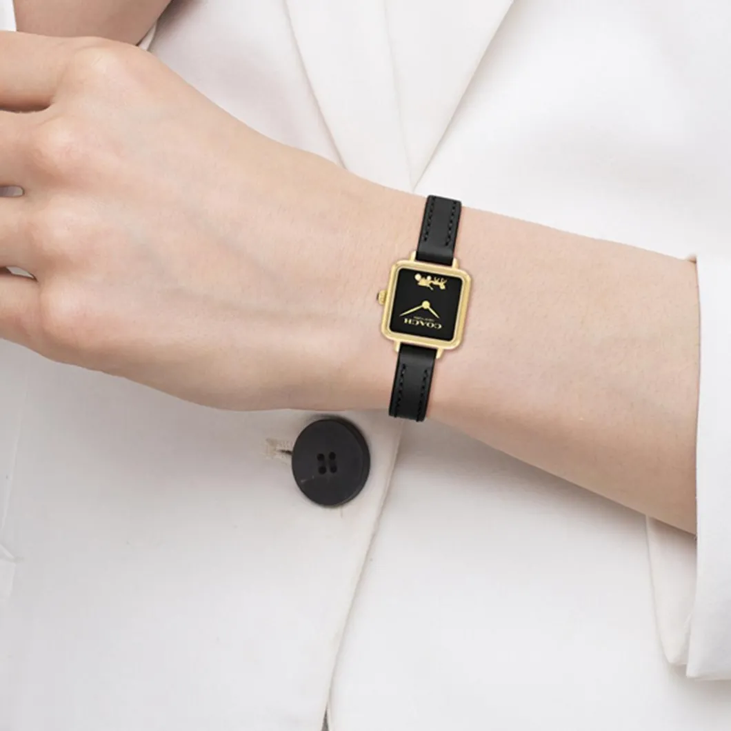 La Montre Femme Coach Cass – 14504225 est un accessoire de poignet chic au design épuré. Présentant un boîtier en acier de couleur doré au format carré de 22 mm, cette montre est aussi solide que raffinée. Son affichage analogique offre une lecture traditionnelle de l’heure. Le bracelet de cette montre résistante à l’eau jusqu’à 30 m, est en cuir noir, assorti à une boucle simple qui assure un ajustement sécurisé autour de votre poignet. Le verre minéral protège le cadran de cette montre à mouvement Quartz. Affichez une élégance intemporelle avec cette montre Coach pour femme.