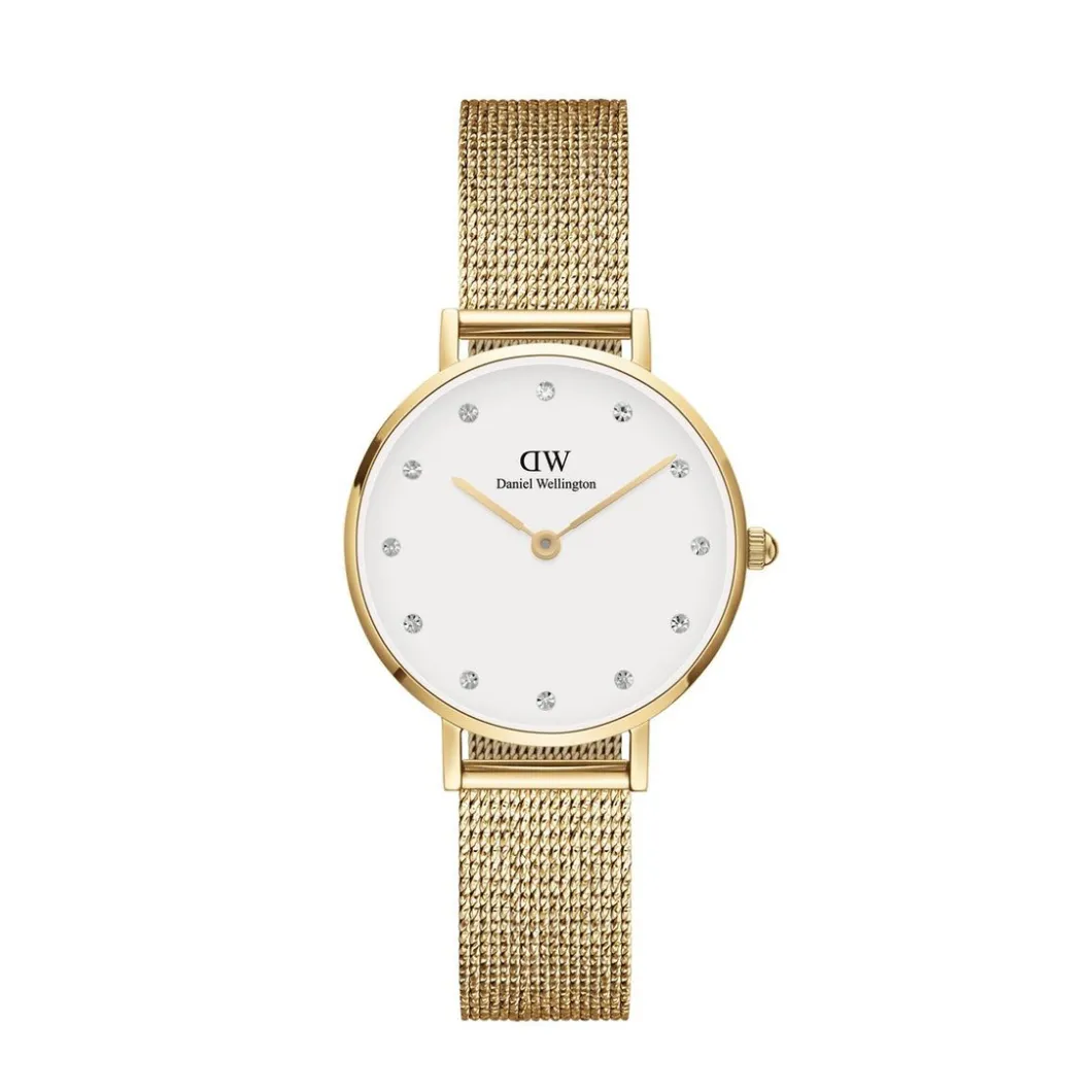 Cette Montre pour femme Petite DW00100604 avec bracelet en acier doré est peut-être la petite touche qui manque à votre tenue pour vous démarquer au quotidien. Elle capte l’attention avec son bracelet tressé doré et ses index en pierres fines brillantes. Avec sa teinte or tendance, elle ne passera pas inaperçue sur vous.