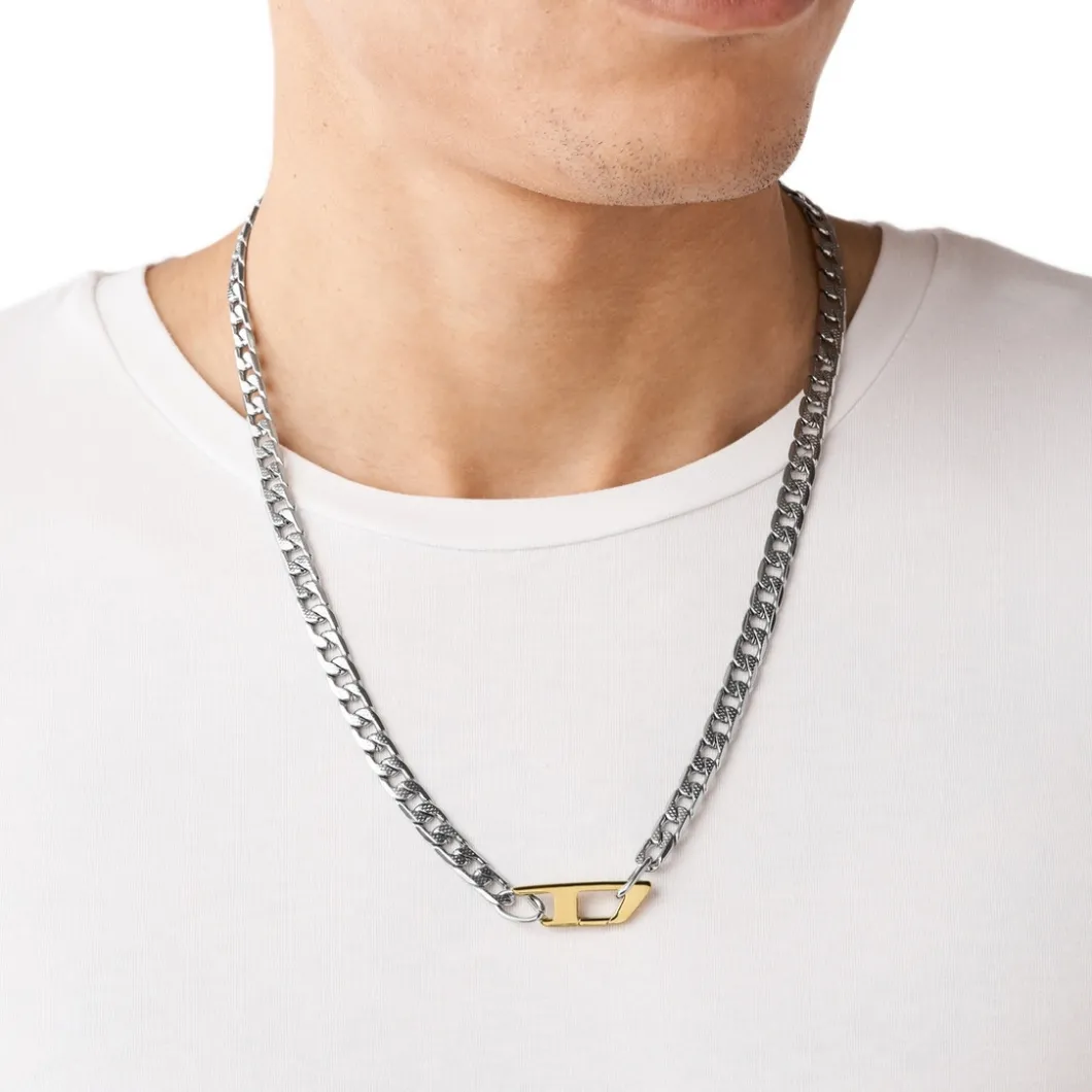 Ce Collier Homme DX1343040 – Diesel est un accessoire tendance de chez Diesel qui a tout pour vous séduire. Il capte les regards avec son fermoir doré en forme de D et sa chaîne en maille gourmette en acier argenté. Élégant, il ira à merveille à plusieurs tenues.