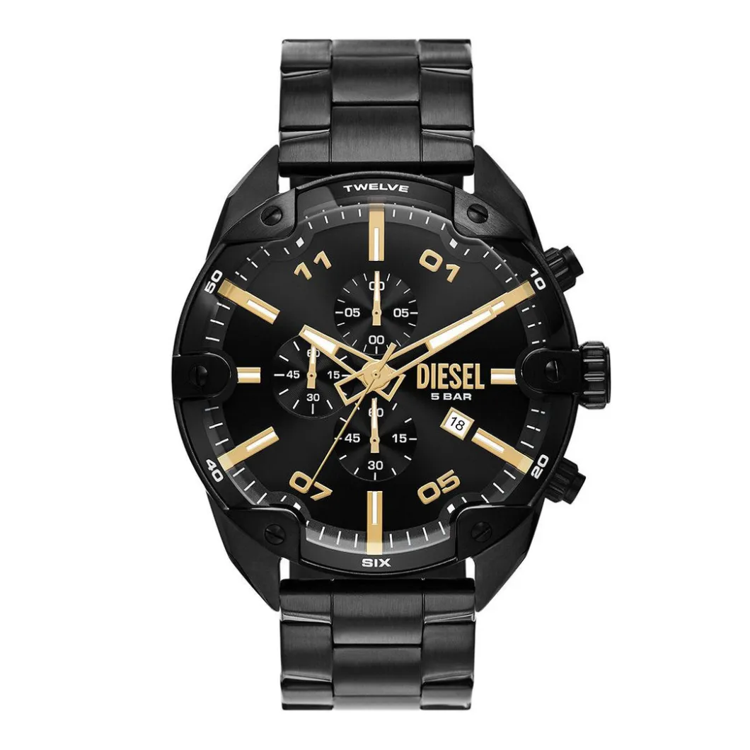 Une montre Diesel représente l’approche adoptée par Diesel : un mélange de différentes langues et matières, mais avec une mécanique robuste.