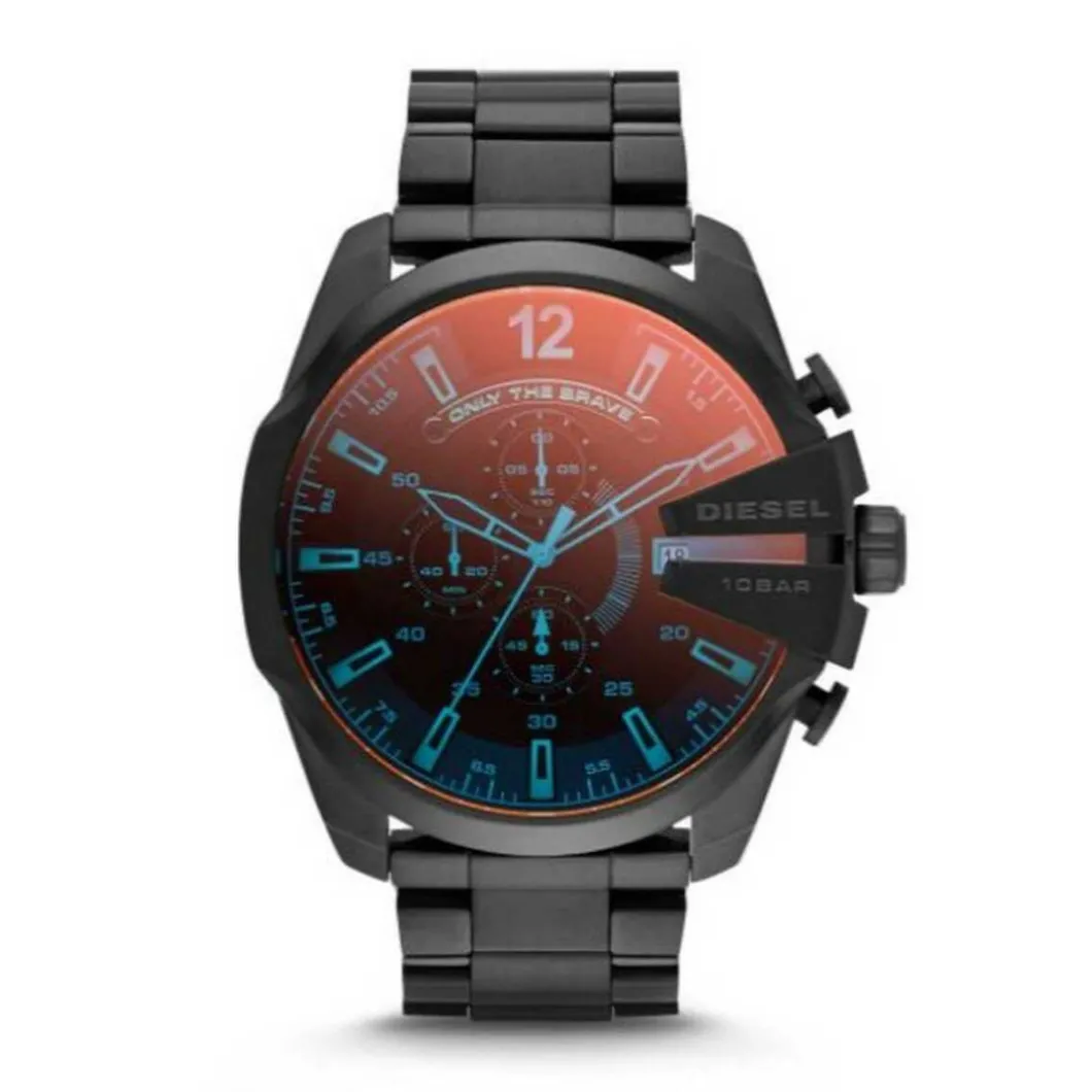 Une montre Diesel représente l’approche adoptée par Diesel : un mélange de différentes langues et matières, mais avec une mécanique robuste.