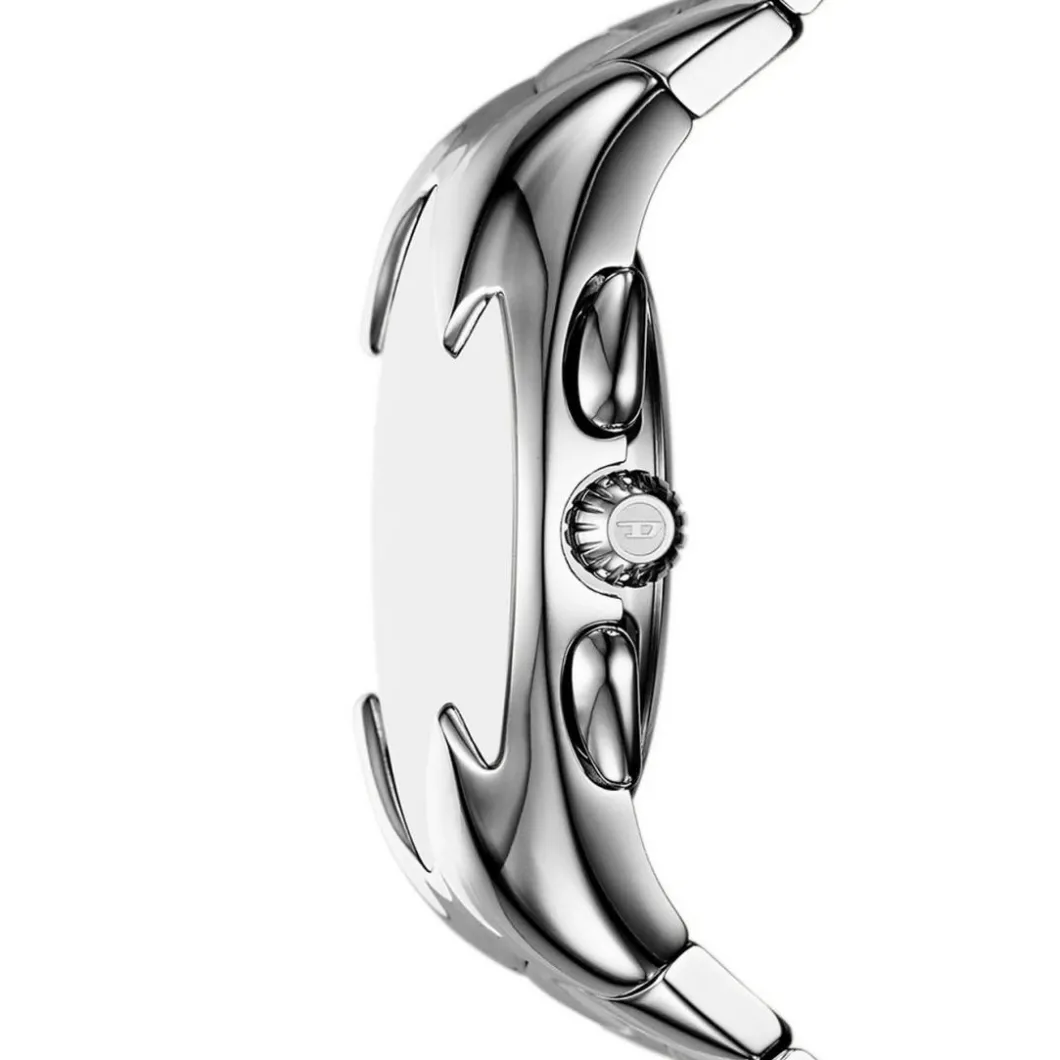 Une montre Diesel représente l’approche adoptée par Diesel : un mélange de différentes langues et matières, mais avec une mécanique robuste.
