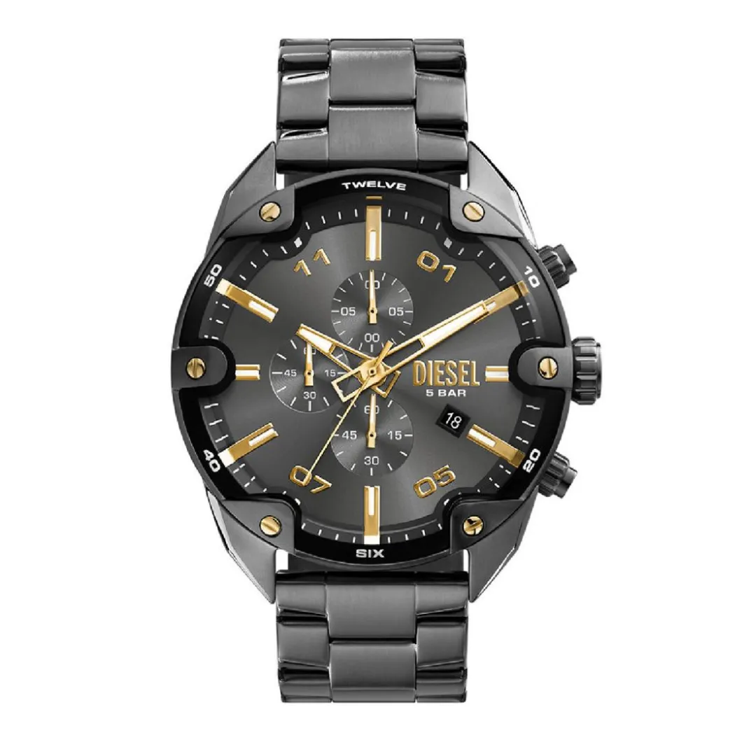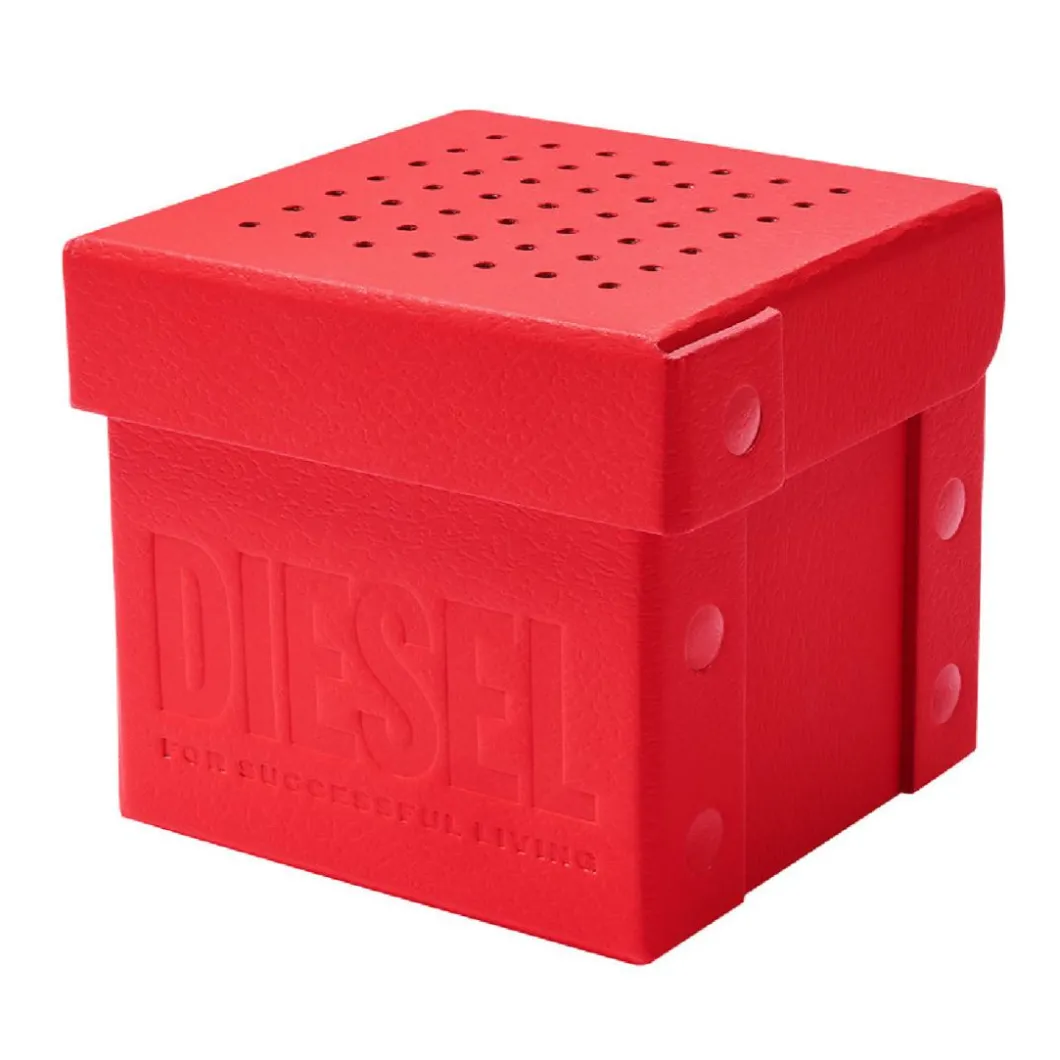 Une montre Diesel représente l’approche adoptée par Diesel : un mélange de différentes langues et matières, mais avec une mécanique robuste.