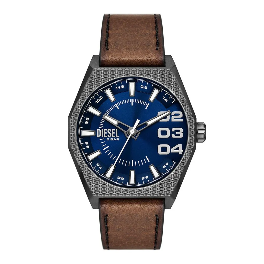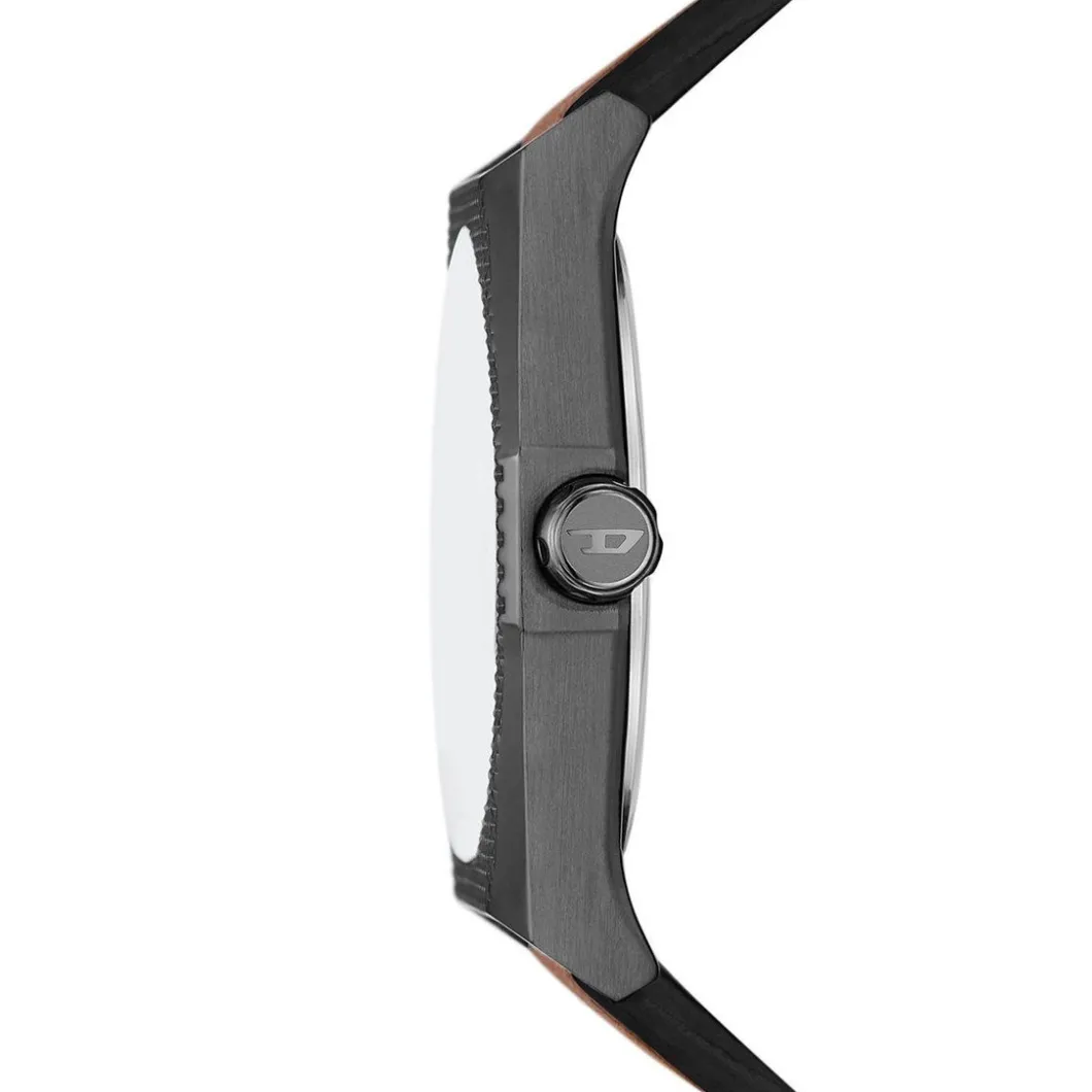 Une montre Diesel représente l’approche adoptée par Diesel : un mélange de différentes langues et matières, mais avec une mécanique robuste.
