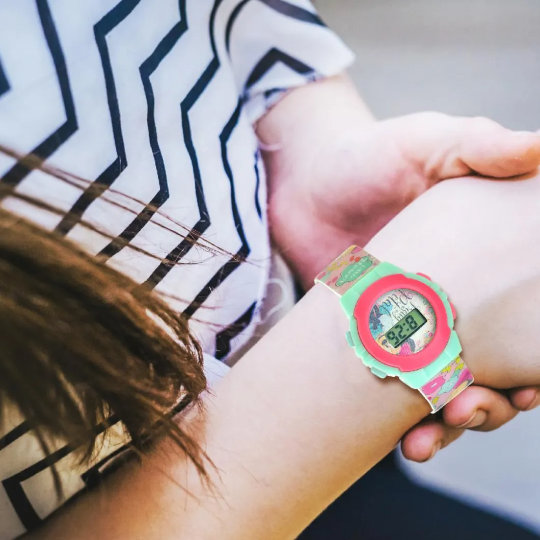 Cette Disney montre Minnie pour enfants est à la fois attrayante et ludique. Le boitier vert est en plastique d’un diamètre de 31 mm dans une forme ronde, qui est surmontée d’un verre en plastique. La couleur rose du bracelet en silicone apporte une touche de gaieté à cette montre. Le système de fermeture est une boucle simple favorable aux petites mains. L’affichage est numérique et le mouvement est quartz. Le produit est destiné aux filles.