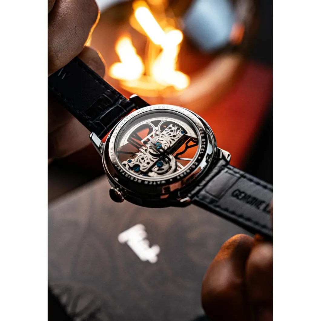 L’élégance masculine est mise en avant avec cette montre pour homme de marque EARNSHAW. Inspirée du design du célèbre pont de Cornwall Bridge, la montre EARNSHAW Cornwall Bridge Automatic ES-8287-01 possède un affichage analogique qui révèle un mouvement automatique précis. Le boîtier en acier de couleur argent, mesurant 42mm de diamètre, encadre un cadran rond, sous un verre minéral résistant. Le bracelet en cuir bleu se ferme par une boucle simple, ajoutant une touche de sophistication à cette montre. Avec une étanchéité jusqu’à 5 ATM (50 mètres), cette montre EARNSHAW est adaptée au style de vie urbain actif. Une véritable signature d’un homme de goût et de distinction.
