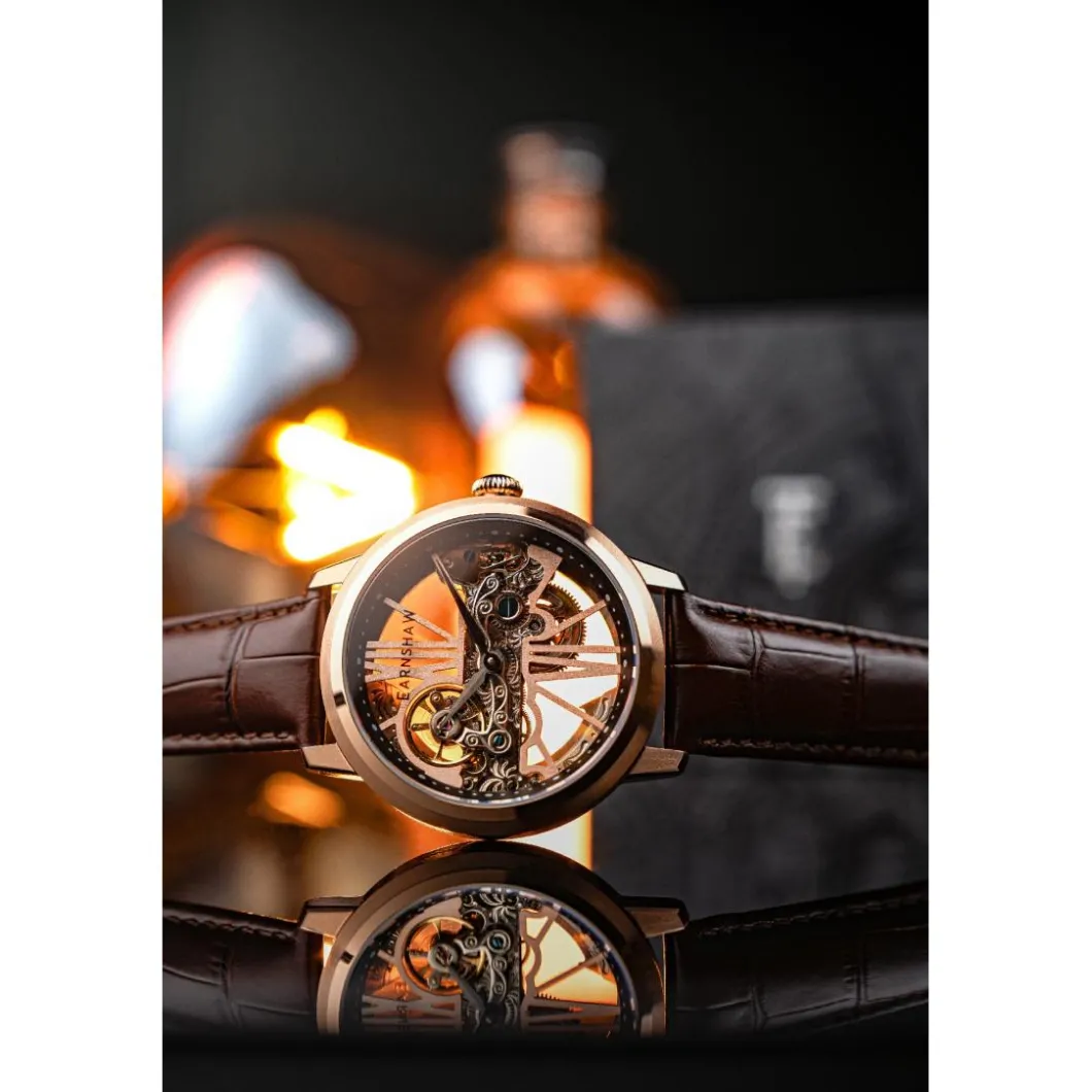 La montre homme EARNSHAW Cornwall Bridge Automatic – ES-8287-02 est un accessoire masculin de haute qualité. Fidèle à l’image de la marque EARNSHAW, cette montre se distingue par sa technicité et son élégance. Son boitier rond de 42 mm, de couleur doré rose, est fabriqué en acier, ajoutant une touche de robustesse à son design. Le bracelet en cuir marron contribue à l’esthétique soignée de cet accessoire. Sa forme de boitier rond et sa boucle simple dénote une certaine sobriété. Le mouvement automatique et l’affichage analogique attestent de son mécanisme sophistiqué. En outre, cette montre a une étanchéité de 50 m (5 ATM), ce qui garantit sa durabilité, même au contact de l’eau. Elle est recouverte d’un verre minéral, garantissant l’intégrité du cadran.