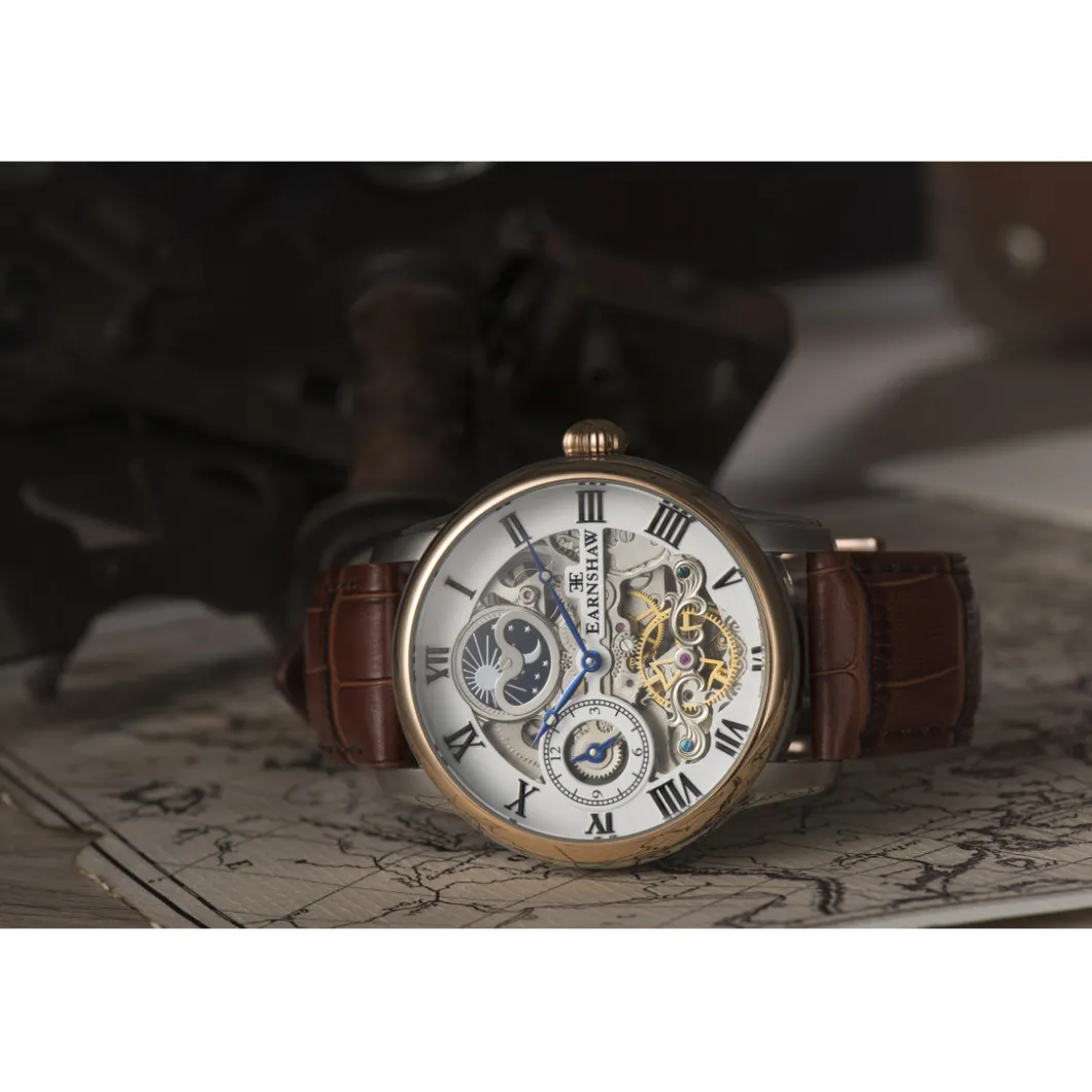 Le cadran de la Montre Homme ES-8006-08 – Earnshaw Longitude est protégé sous un verre minéral robuste qui résistera à l’usure du temps. Entourée d’une somptueuse lunette dorée, ses finitions squelettes en font une pièce unique. Ce modèle fonctionne grâce à un mécanisme automatique efficace.