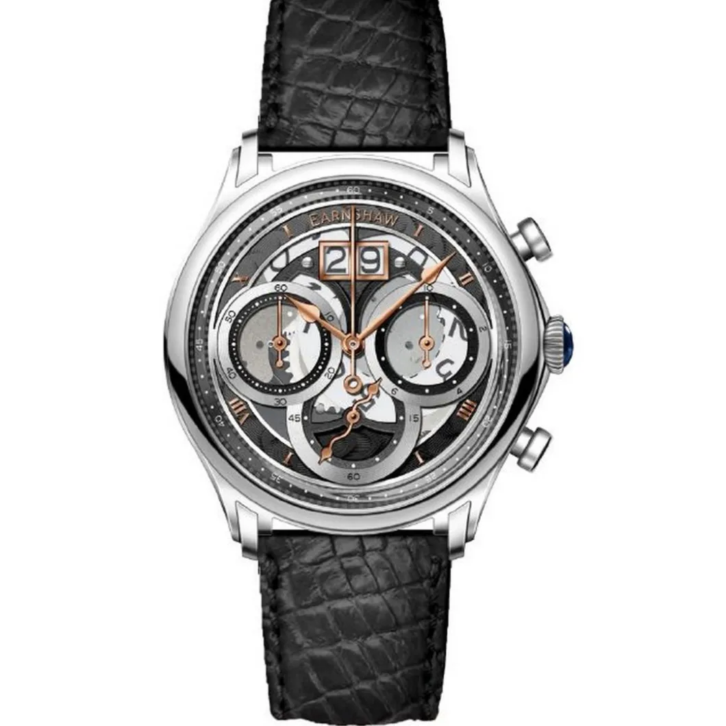 On aime la finition squelette du cadran de cette Montre ES-8260-02 EARNSHAW. Analogique, celui-ci met à l’honneur un guichet dateur à 12h et trois compteurs. Ce garde-temps présente une étanchéité de 5 ATM.
