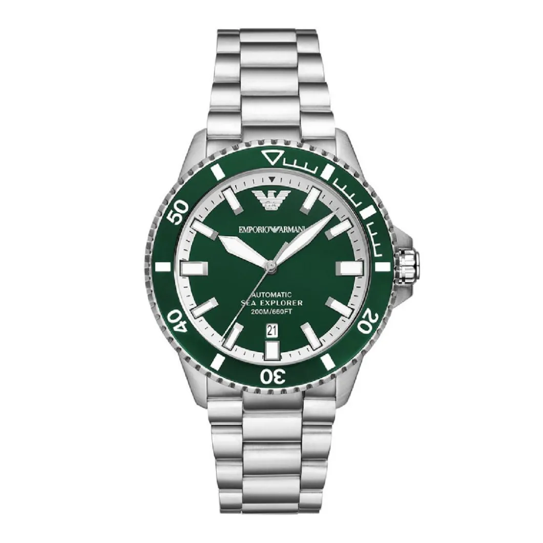 La Montre Homme Emporio Armani Sea Explorer – AR60080 est un symbole d’élégance et de raffinement. Le bracelet acier argenté s’accorde à la perfection avec le boîtier rond en acier inoxydable argent. Cette montre a un affichage analogique et vous offre la commodité de l’indication de la date. D’un diamètre de 43 mm, elle est résistante à l’eau jusqu’à 200 mètres. Son verre en saphir lui confère une robustesse à toute épreuve. Finement travaillée, elle est animée par un mouvement automatique, signe de son savoir-faire. Son fermoir de type boucle déployante assure un ajustement parfait. Un bijou d’horlogerie pour homme idéal pour toutes occasions.