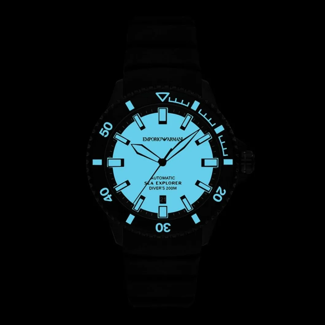 Découvrez l’élégance incarnée avec la montre homme Emporio Armani Sea Explorer AR60085. Son boitier rond en acier robuste affiche une belle couleur noir et un diamètre de 43mm. Le bracelet en silicone noir est confortable et durable, assuré par une boucle simple. Cette pièce dispose d’une étanchéité de 200m (20 ATM), parfaite pour les activités sous-marines. La montre fonctionne grâce à un mouvement automatique et propose un affichage analogique clair. Elle est dotée d’un dateur fonctionnel et son verre en saphir résiste aux rayures pour une utilisation de longue durée. Cette montre de genre masculin est une véritable déclaration de style.