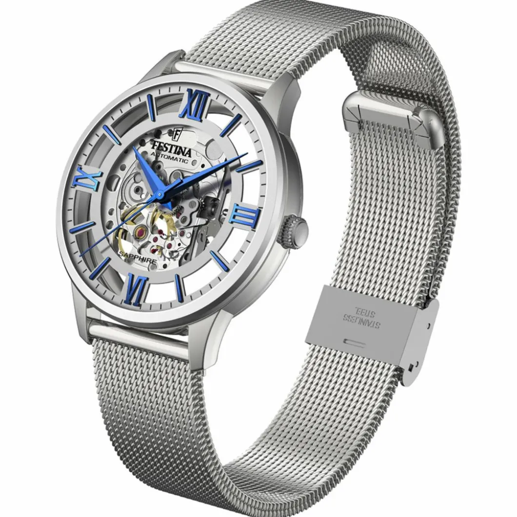 Noble et audacieuse, cette Montre Homme F20534-1 – Festina est dotée d’un boîtier squelette rond qui dévoile son mécanisme. Elle dispose d’un bracelet en maille milanaise et reste étanche et facile à accorder à vos tenues.