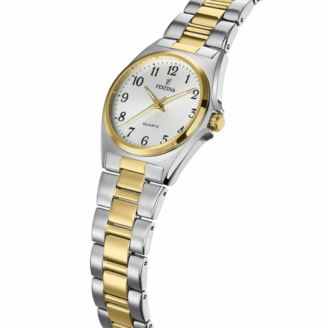 Intemporelle et moderne, la Montre Festina CLASSIC F20556-1 Femme allie élégance et classe. Elle est dotée d’un boîtier en acier inoxydable rond de 31 mm de diamètre. Ce garde-temps est composé d’un sublime cadran doré à la finition soleillée. Le sublime bracelet en acier inoxydable de couleurs argenté et doré se ferme grâce à sa boucle déployante.
