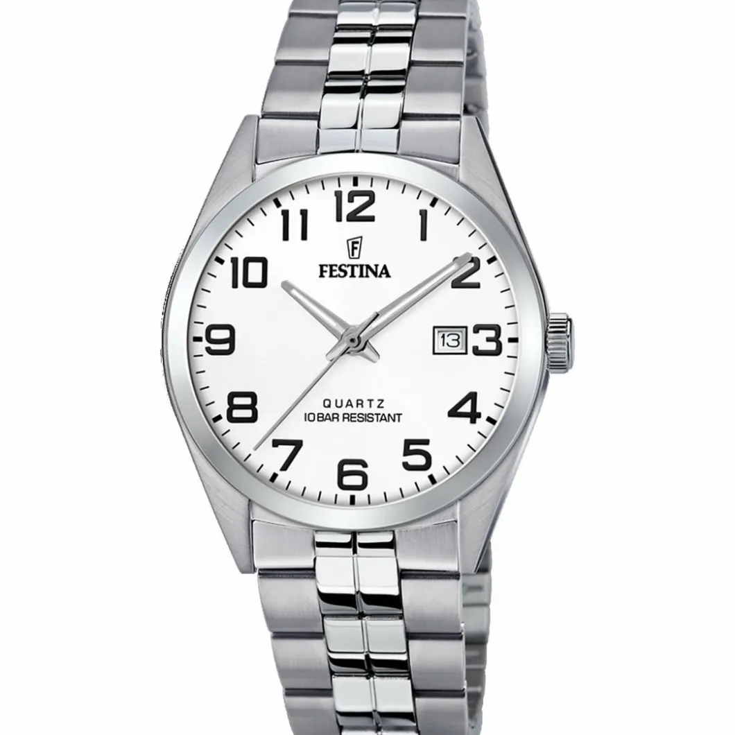 Montre Festina F20437-1 – CLASSIQUE Dateur Acier Argenté Cadran Blanc Homme