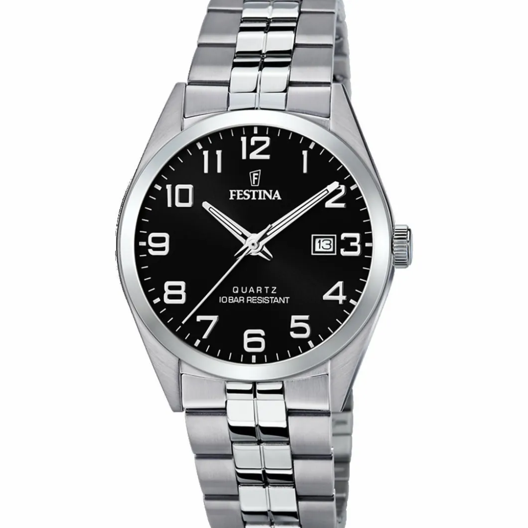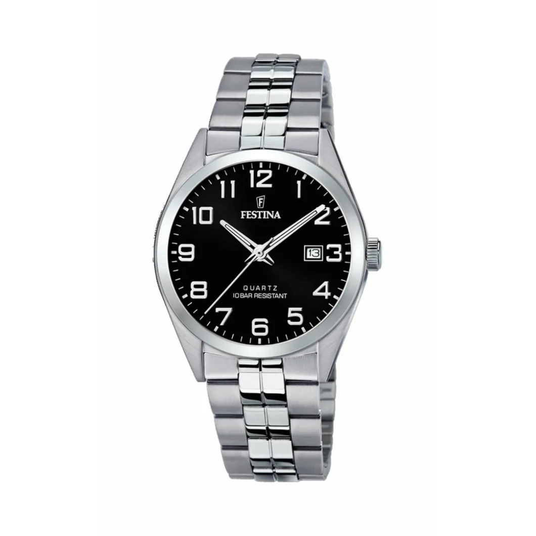 Montre Festina F20437-4 – CLASSIQUE Dateur Acier Argenté Cadran Noir Homme