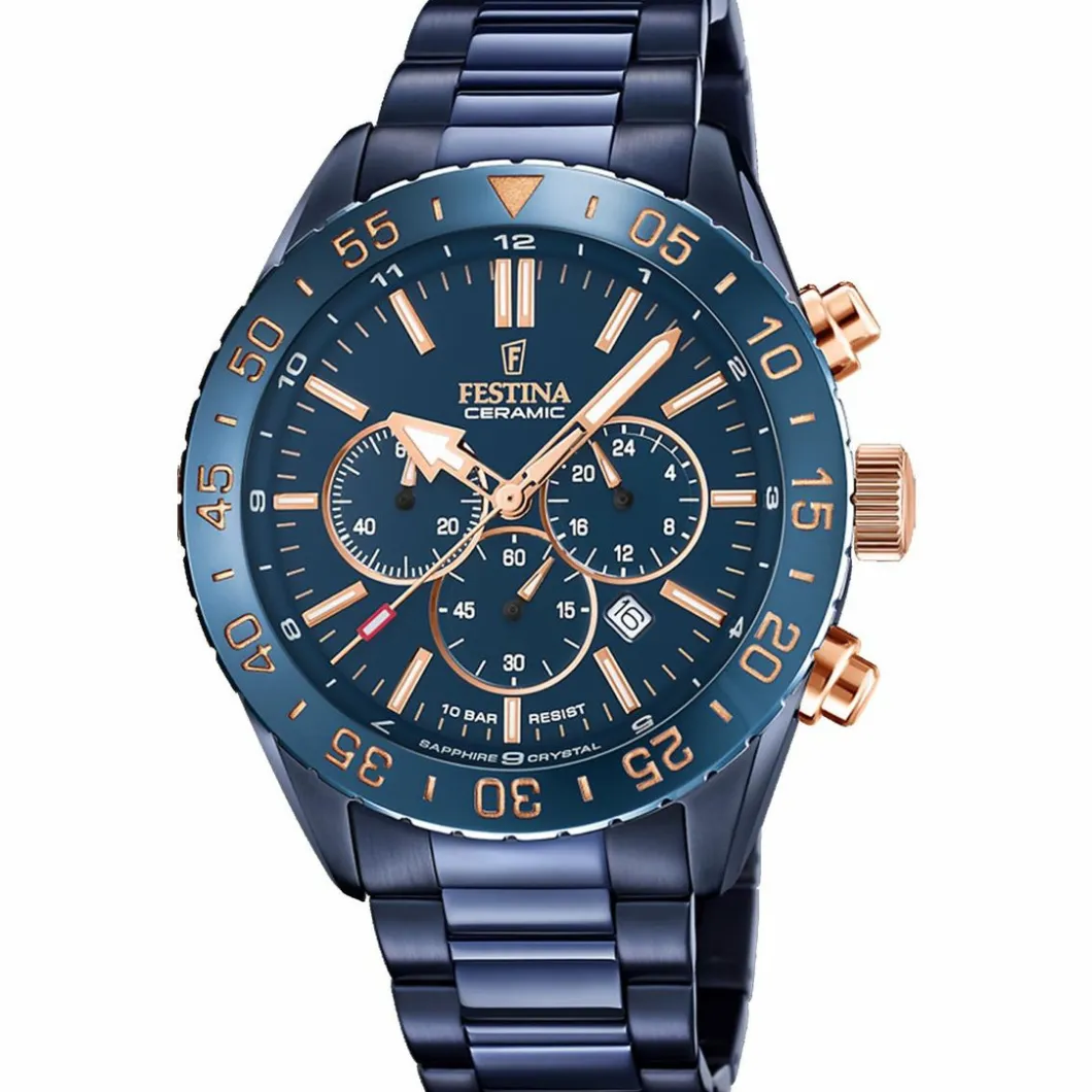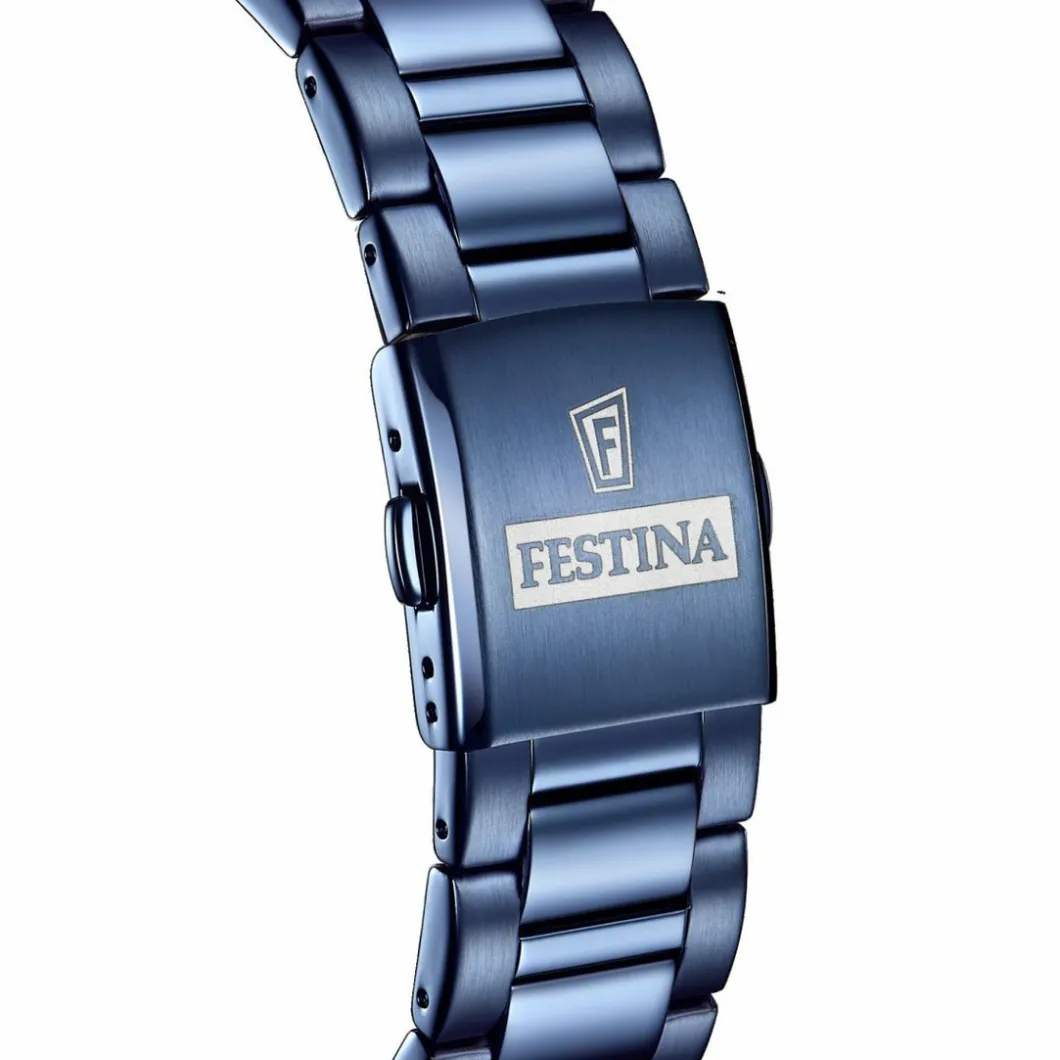Messieurs, venez découvrir la nouvelle Montre F20576-1 Homme, développée par la maison Festina. Possédant un look sportif et élégant, cette montre vous accompagnera partout. Tout le charme de cette montre réside dans son cadran de forme ronde. Sa couleur bleue nuit, les différents marqueurs or rose et les 3 compteurs donneront de l’éclat et de l’élégance à votre poignet. Pour compléter le look sobre et élégant de la montre, elle dispose d’un bracelet en acier inoxydable.