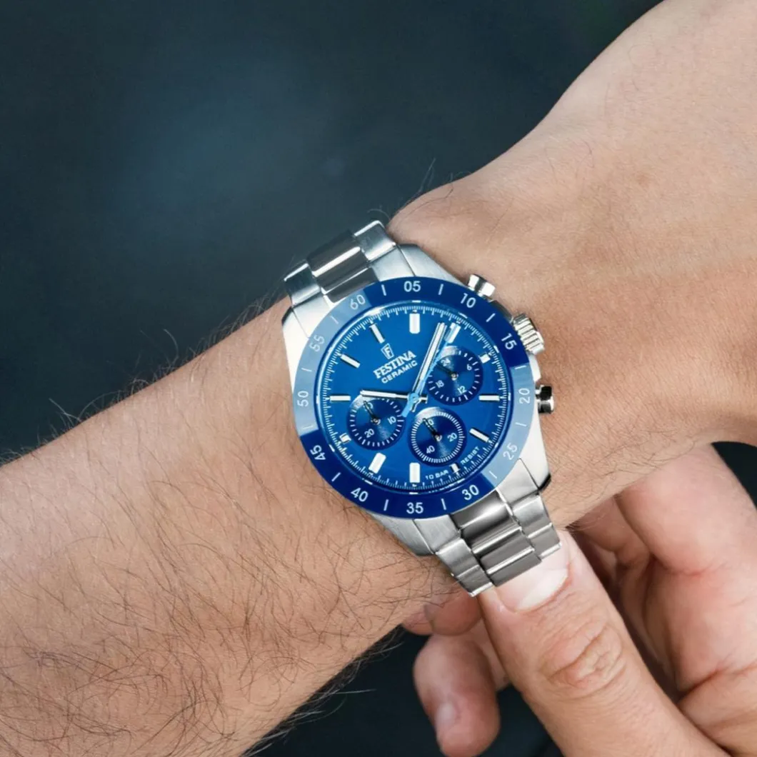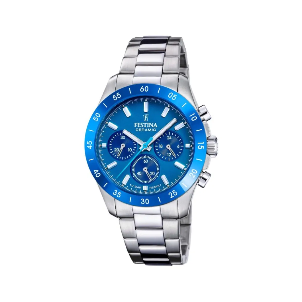 Voici la Montre Femme Festina Ceramic – F20693-4 Bracelet Acier Argent de la marque renommée Festina. Son bracelet et son boitier, tous deux en acier, brillent d’un éclat argenté. Cette montre analogique affiche son cadran sur un boitier rond de 39 mm. Elle comporte une boucle déployante pour une fermeture sécurisée et aisée. Elle est alimentée par un mouvement à quartz et offre des fonctionnalités de chronographe. Son verre minéral la rend résistante aux rayures. Ajoutez à cela son étanchéité de 10 ATM, et cette montre est aussi à l’aise dans l’eau qu’en dehors. Un bijou technologique pour les femmes chics et modernes.