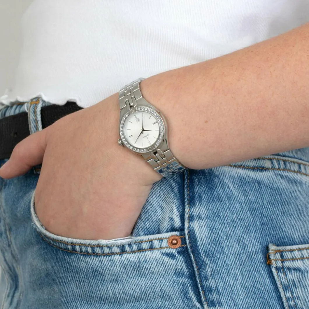 Alliant style et élégance, la montre Festina F16867-1 est une montre glamour pour femmes. Elle est munie d’un cadran blanc serti de cristaux, d’un boîtier et d’un bracelet en acier inoxydable. Cette montre est équipée d’un dateur.