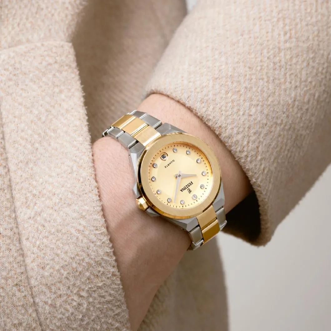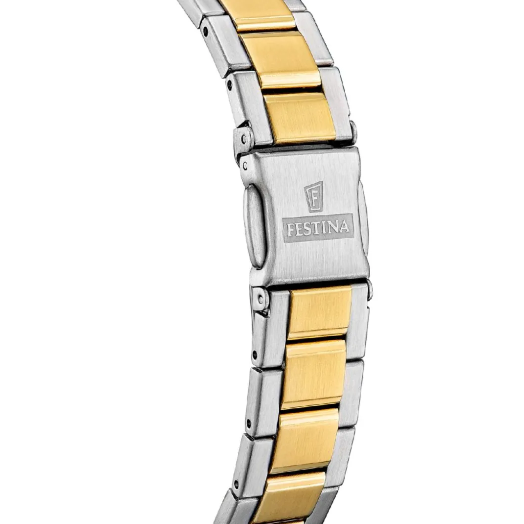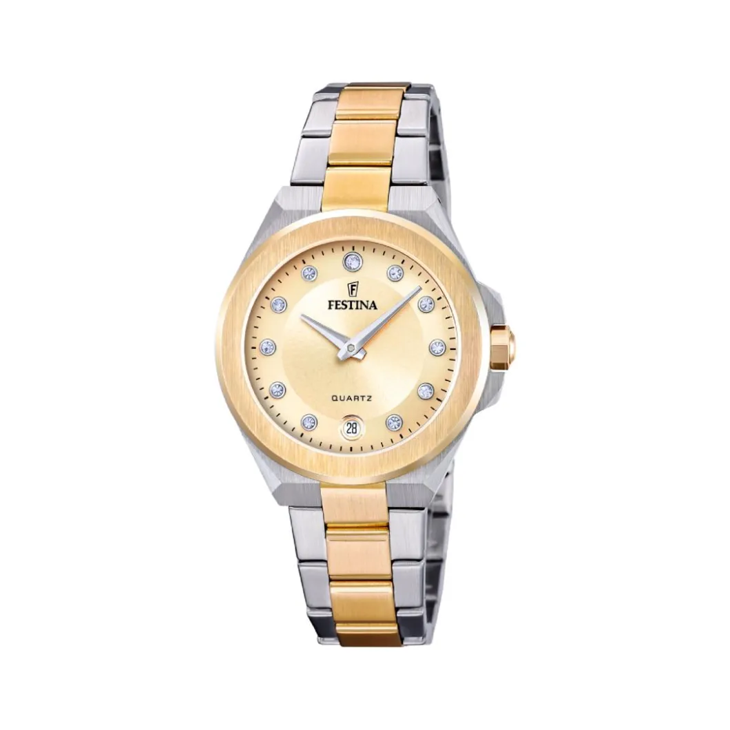 Découvrez cette élégante Montre Femme Festina Mademoiselle – F20702-2. Avec son bracelet en acier bicolore, elle arbore un style chic et raffiné. Son boîtier rond de 33mm, également en acier, apporte une touche intemporelle. Son affichage analogique sur fond blanc présente des index en bâtons et est protégé par un verre minéral résistant. Elle est également dotée d’une fonctionnalité dateur très pratique. Cette montre, animée par un mouvement quartz, est étanche jusqu’à 50m (5ATM). Elle se ferme par une boucle déployante discrète pour une adhérence parfaite. Si vous recherchez un bijou à la fois glamour et fonctionnel, ce modèle est fait pour vous.