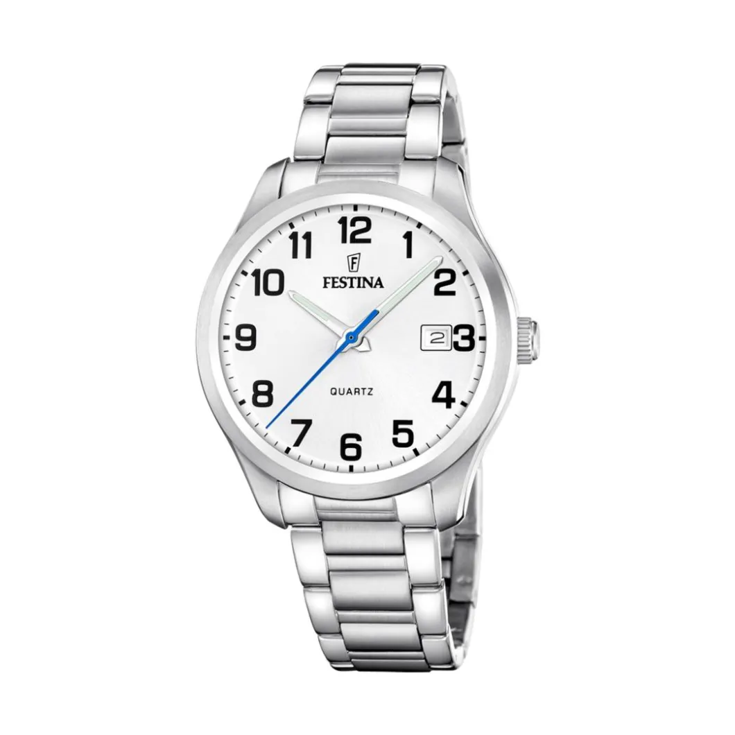 La Montre Homme Festina Acero Clasico – F20736-1 Bracelet Acier Argent de marque Festina est un exemple parfait d’élégance et de raffinement. Son boitier rond, de couleur argent, d’un diamètre de 42 mm, est fabriqué en acier de haute qualité. Le bracelet, aussi en acier et de même couleur, est doté d’une boucle déployante pour un ajustement optimal. Sa fonctionnalité dateur ajoute une touche de praticité à ce superbe accessoire. Avec une étanchéité de 50m (5 ATM), cette montre au mouvement Quartz et à l’affichage analogique est parfaite pour un homme désireux de concilier style et fonctionnalité. Le verre minéral de la montre assure sa durabilité.