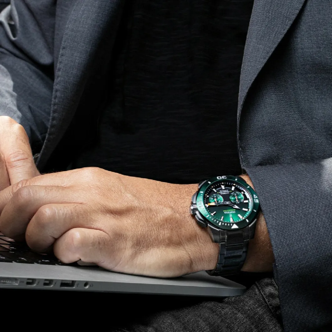 La lunette rotative et les index luminescents font de ces montres des compagnons parfaits pour un usage quotidien. Le bracelet en caoutchouc supplémentaire avec un motif camouflage est un détail élégant qui rend cette collection encore plus désirable, car il s’adapte à chaque changement de tenue.