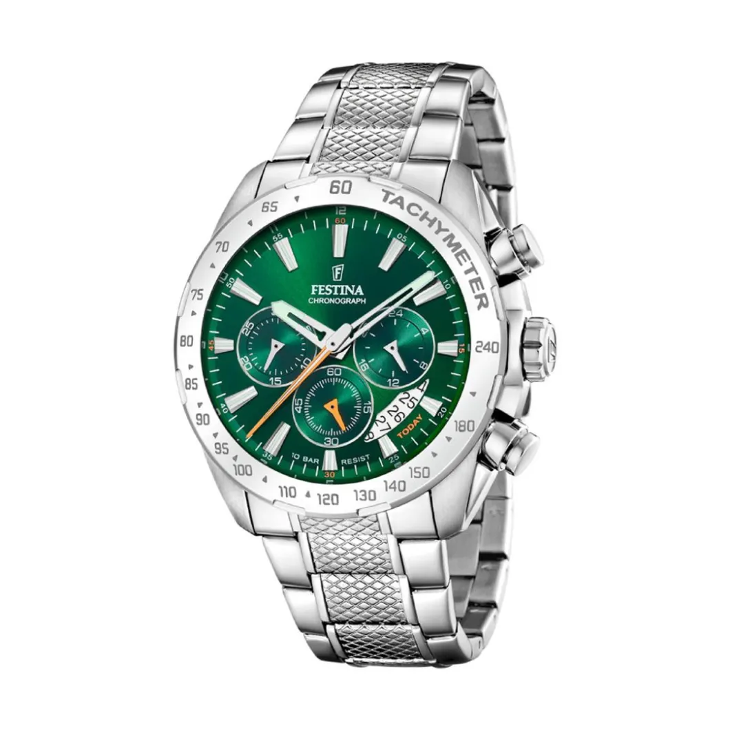 Le produit d’origine est une Montre Homme Festina – F20668-3 de matière Bracelet Acier Argent . Belle montre au boîtier rond en acier de diamètre 45mm, de Teinte argent, elle offre un affichage analogique net avec un mouvement à quartz. Ce joyau a une résistance à l’eau jusqu’à 100 m (10 ATM) et une fonctionnalité de chronographe. La montre se ferme avec une boucle déployante, le tout recouvert d’un verre minéral. En véritable symbole d’élégance, elle est idéale pour agrémenter le poignet masculin.