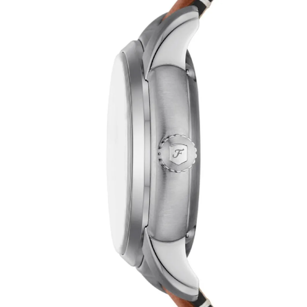 Cette élégante Montre Homme Fossil affiche un style classique avec un bracelet en cuir de couleur marron. Le boitier rond de 43 mm en acier inoxydable de couleur argent renforce son allure sophistiquée. Son verre de type saphir offre une résistance aux rayures exceptionnelle. Avec son mouvement automatique, cette montre est parfaite pour les hommes qui préfèrent des montres automatiques. Sa fermeture à boucle simple permet de l’ajuster au poignet avec facilité. Certifiée étanche jusqu’à 50 mètres, elle peut être portée sans crainte lors de la douche ou de la natation. Ses aiguilles analogiques ajoutent une touche vintage à son design moderne.