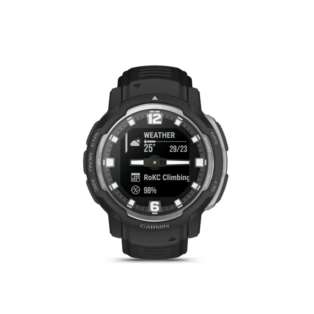 VERRE SOLAIRE : Instinct Crossover offre jusqu’à 28 jours en mode connectée, jusqu’à 25 heures en mode GPS et jusqu’à 71 jours en mode analogique. Instinct Crossover Solar offre une autonomie infinie en mode analogique, jusqu’à 70 jours en mode connectée1 et jusqu’à 31 heures en mode GPS3.