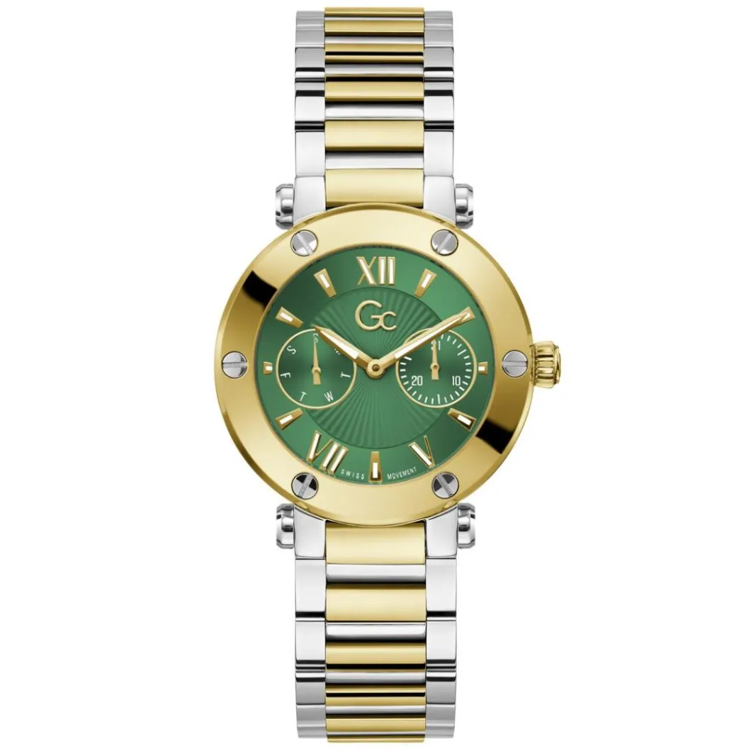Cette élégante Montre Femme GC Aura – Z48003L6MF se distingue par son bracelet doré en acier, ajoutant une touche de sophistication à votre tenue. Le boîtier rond doré, également en acier, de 36 mm de diamètre abrite un mouvement à quartz et un affichage analogique. Le verre minéral de la montre résiste aux rayures, tandis que son étanchéité de 100 m vous permet de la plonger sans crainte. Ses fonctionnalités incluent un dateur pratique. Type de fermeture : Boucle déployante.
